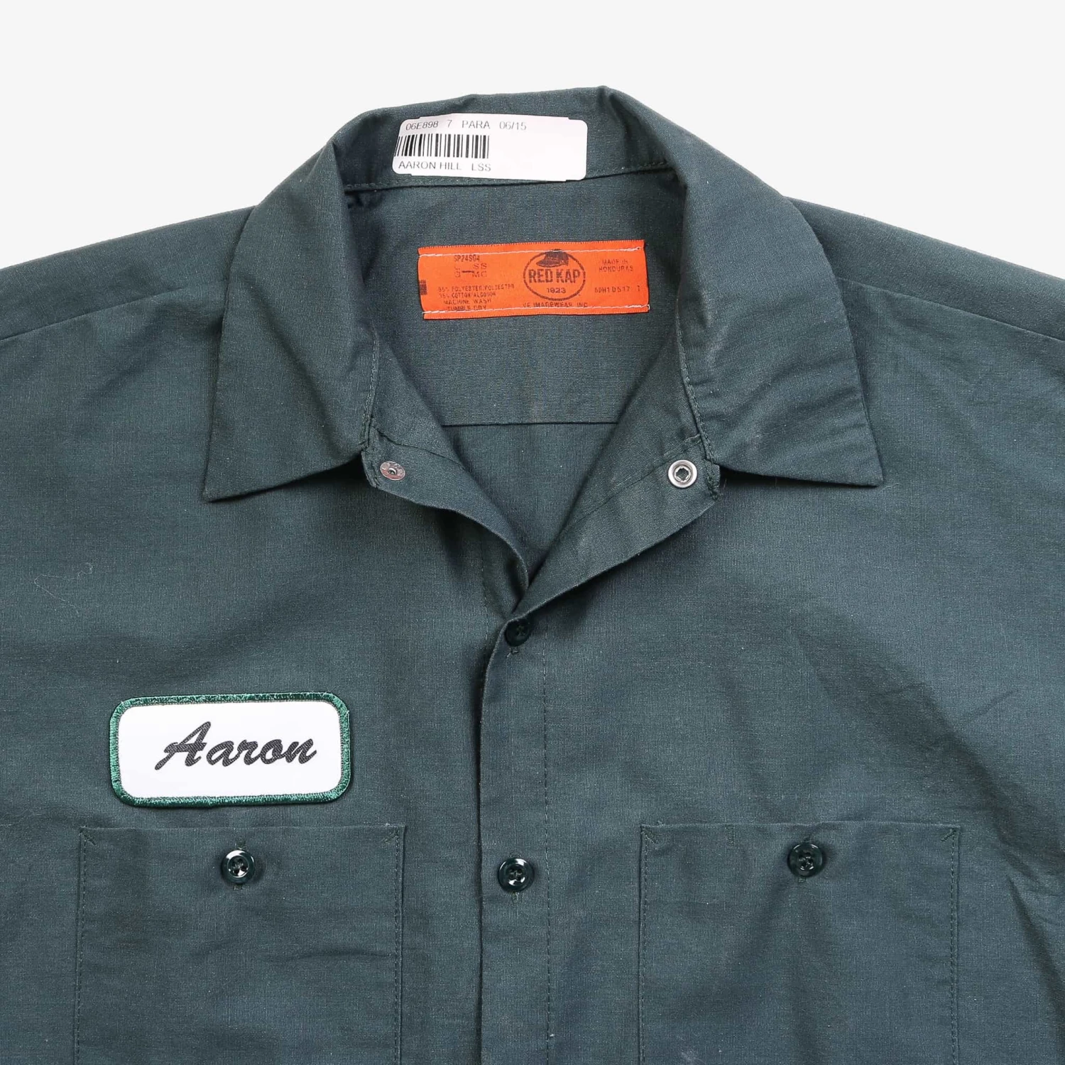 Vintage short-sleeved work shirt with authentic name and business logo patch.Â
