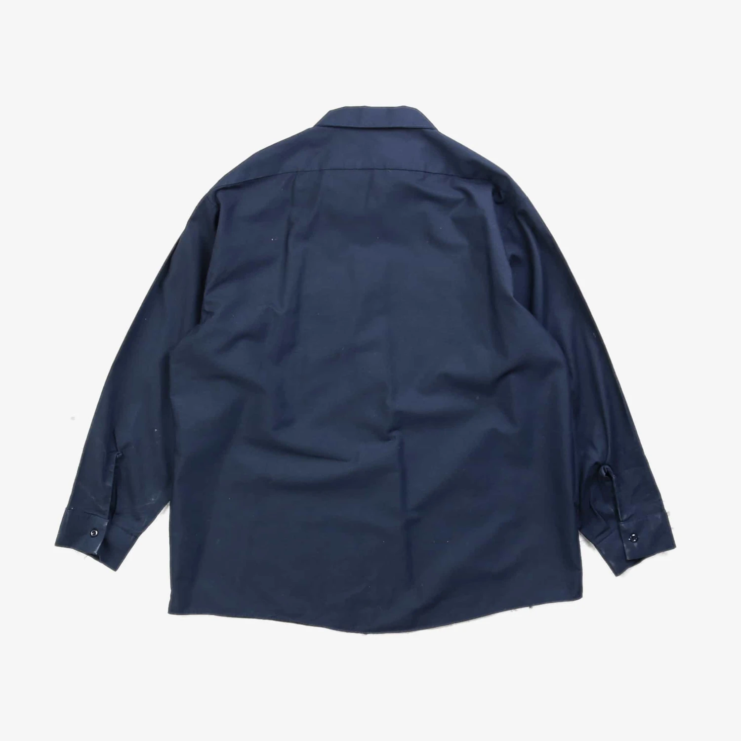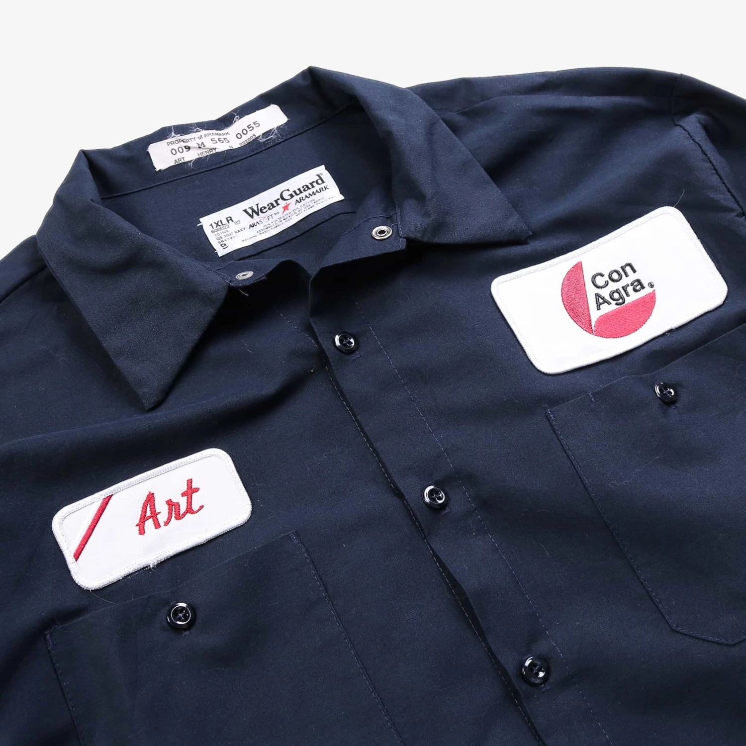 Vintage long-sleeved work shirt with authentic name and business logo patch.Â