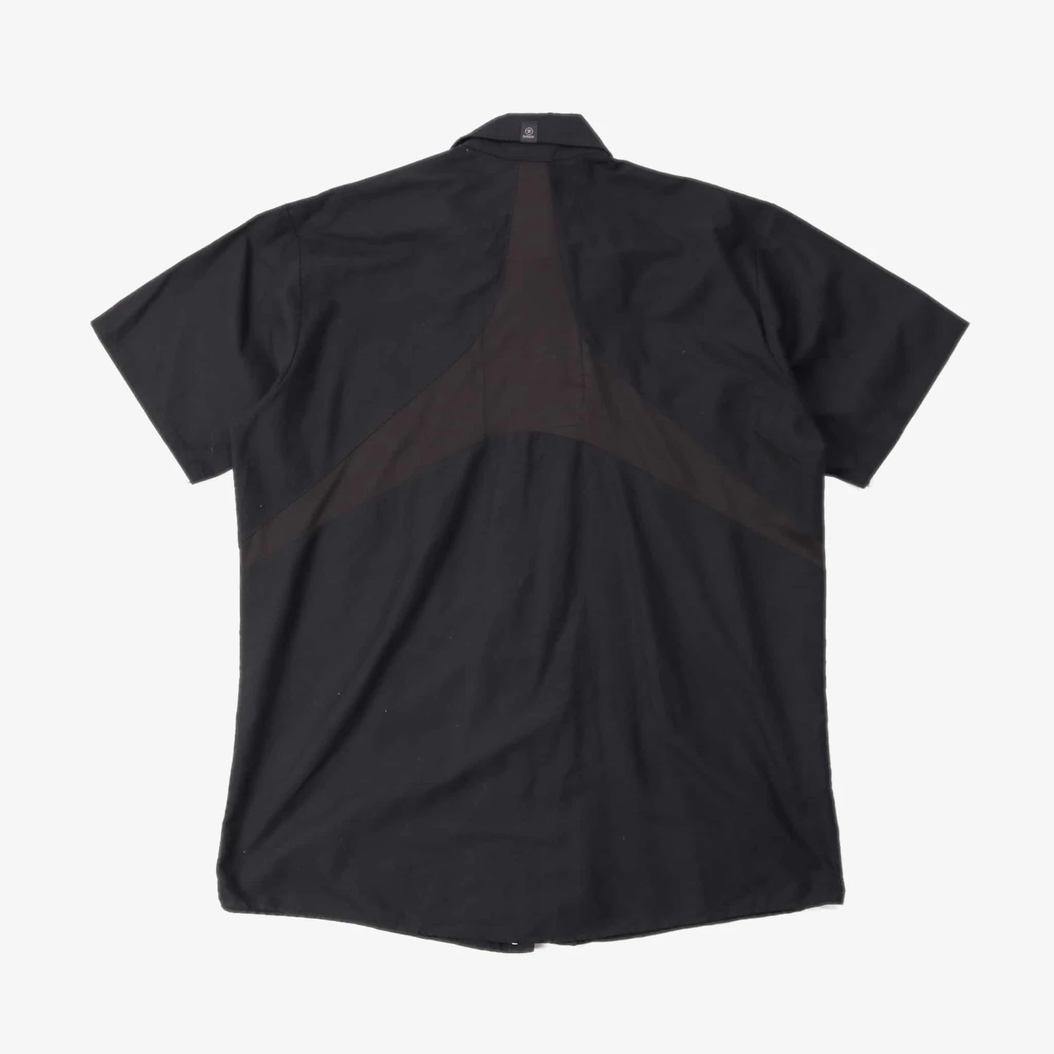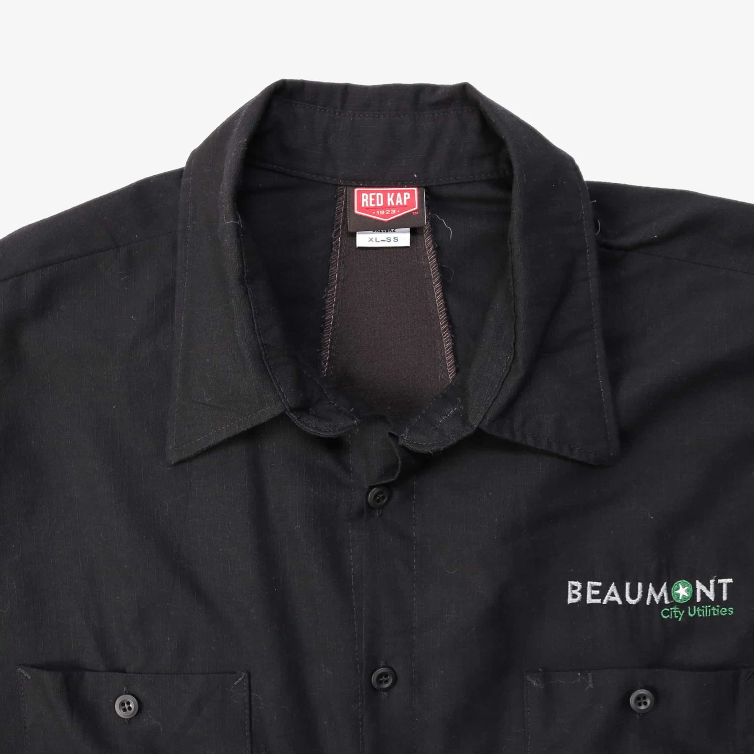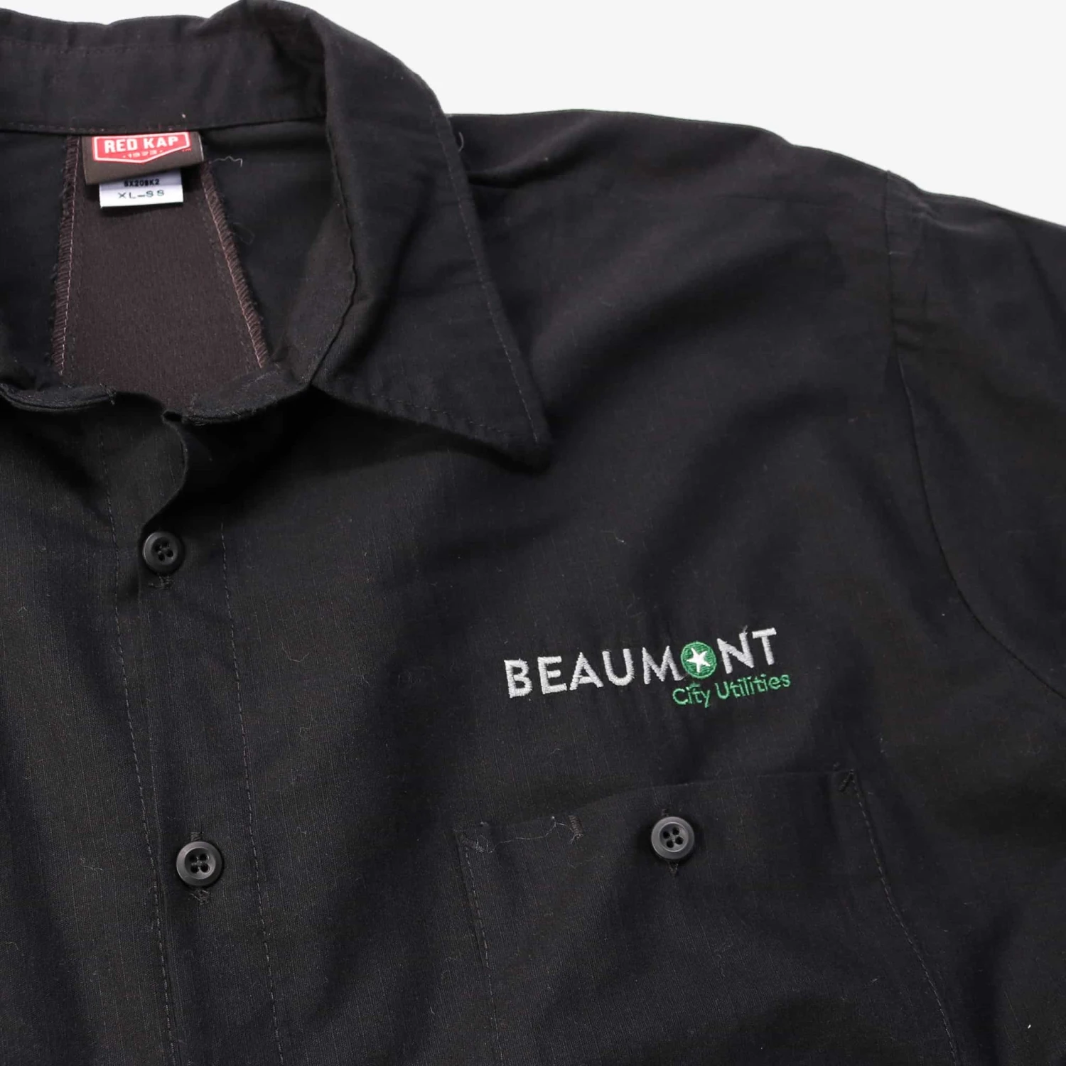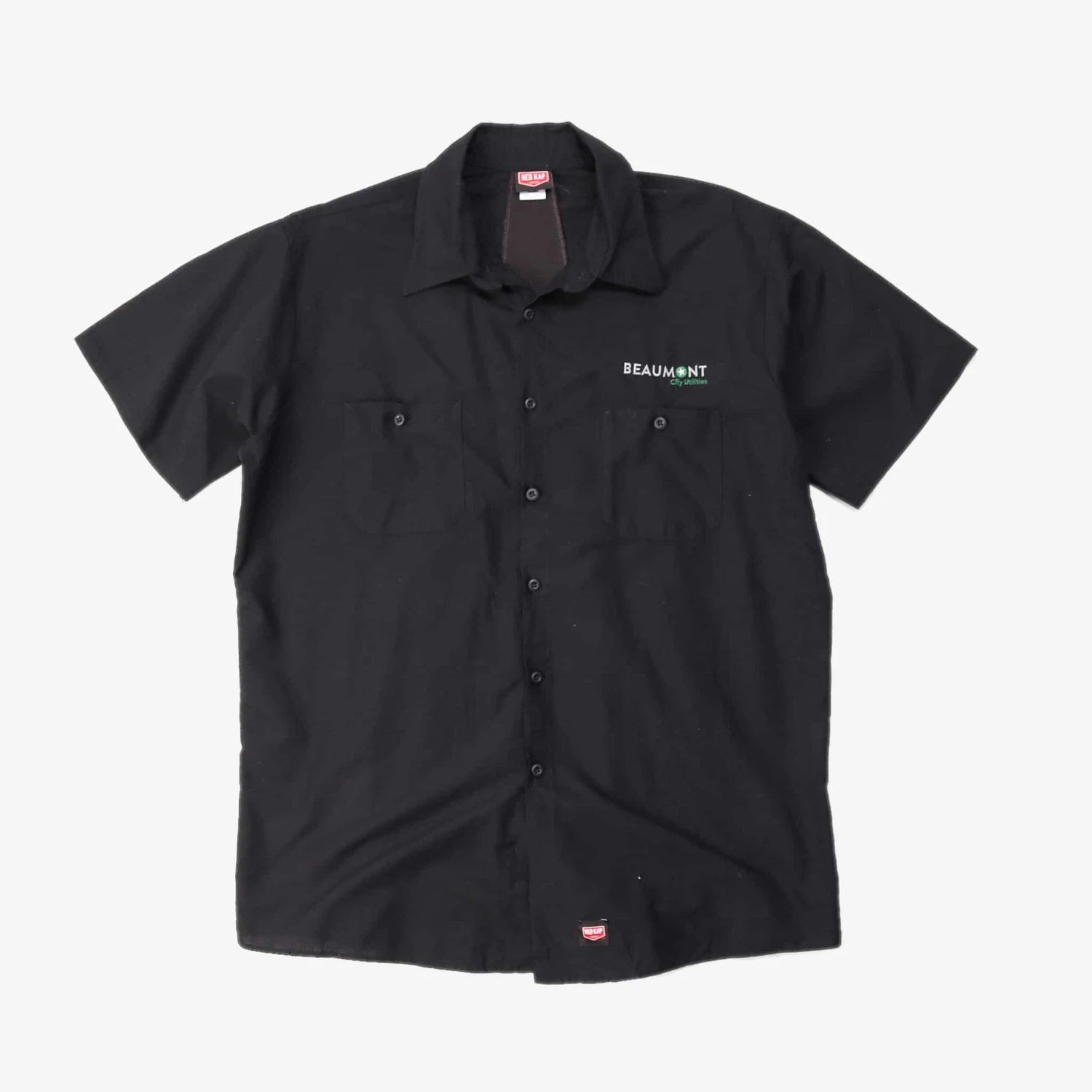 Vintage short-sleeved work shirt with authentic name and business logo patch.