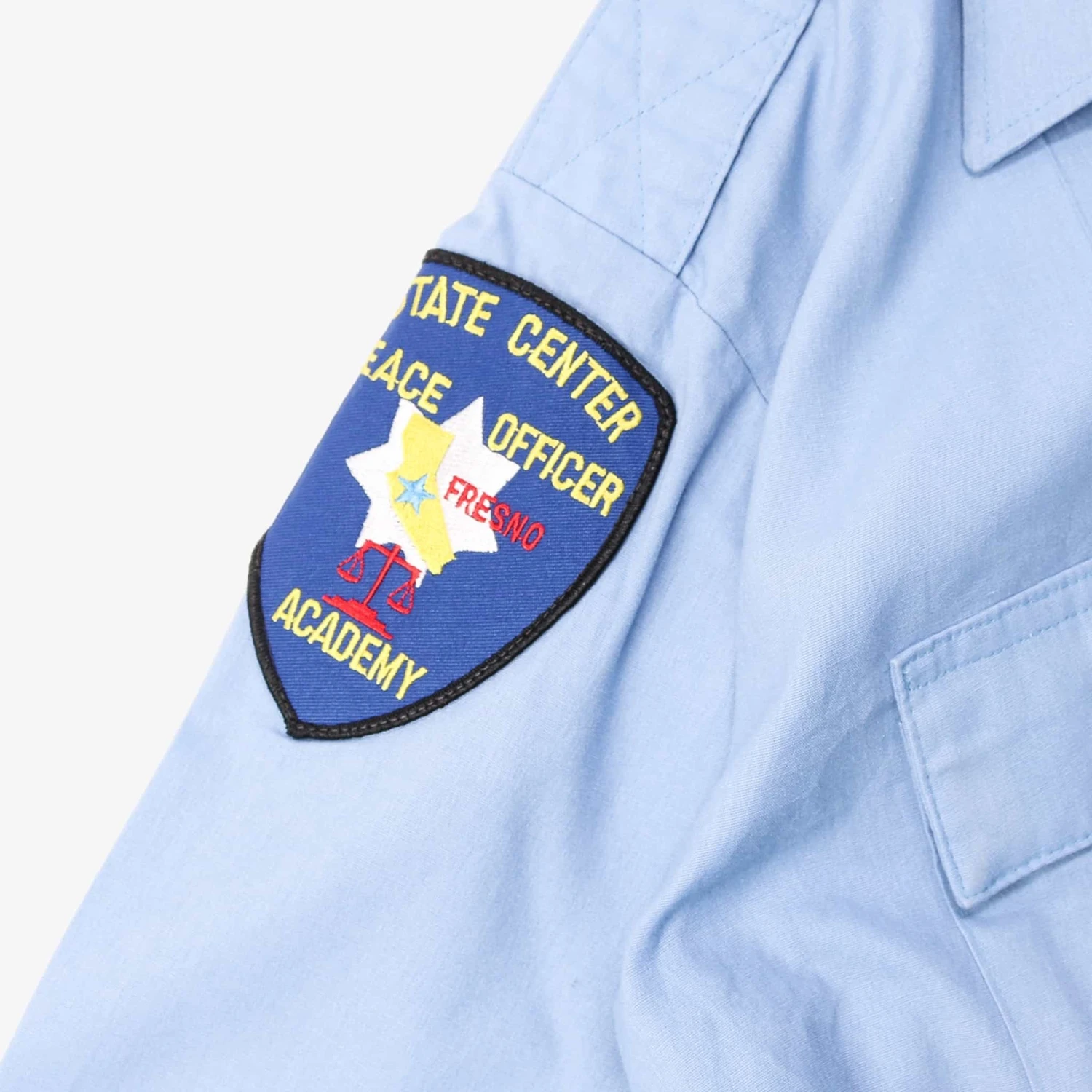 Vintage long-sleeved work shirt with authentic name and business logo patch.Â