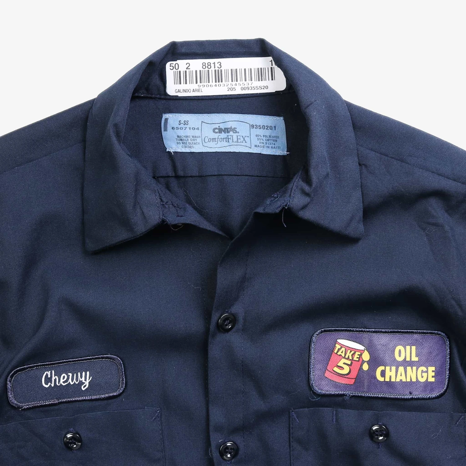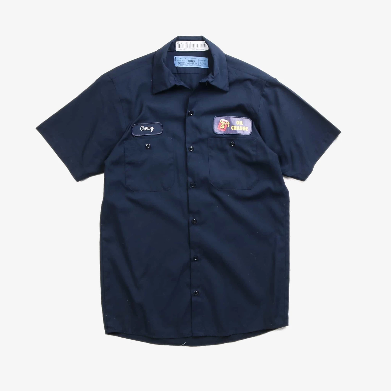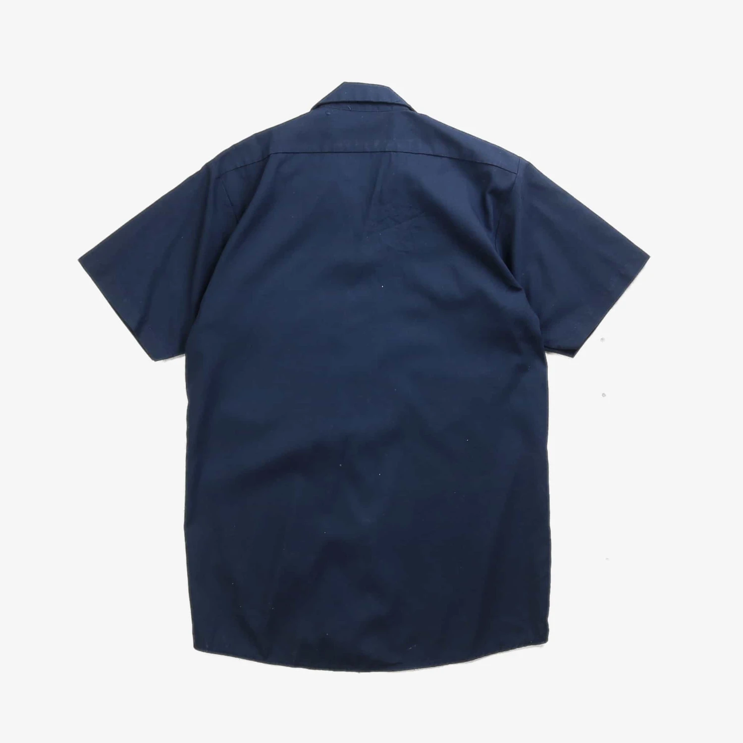 Vintage short-sleeved work shirt with authentic name and business logo patch.Â