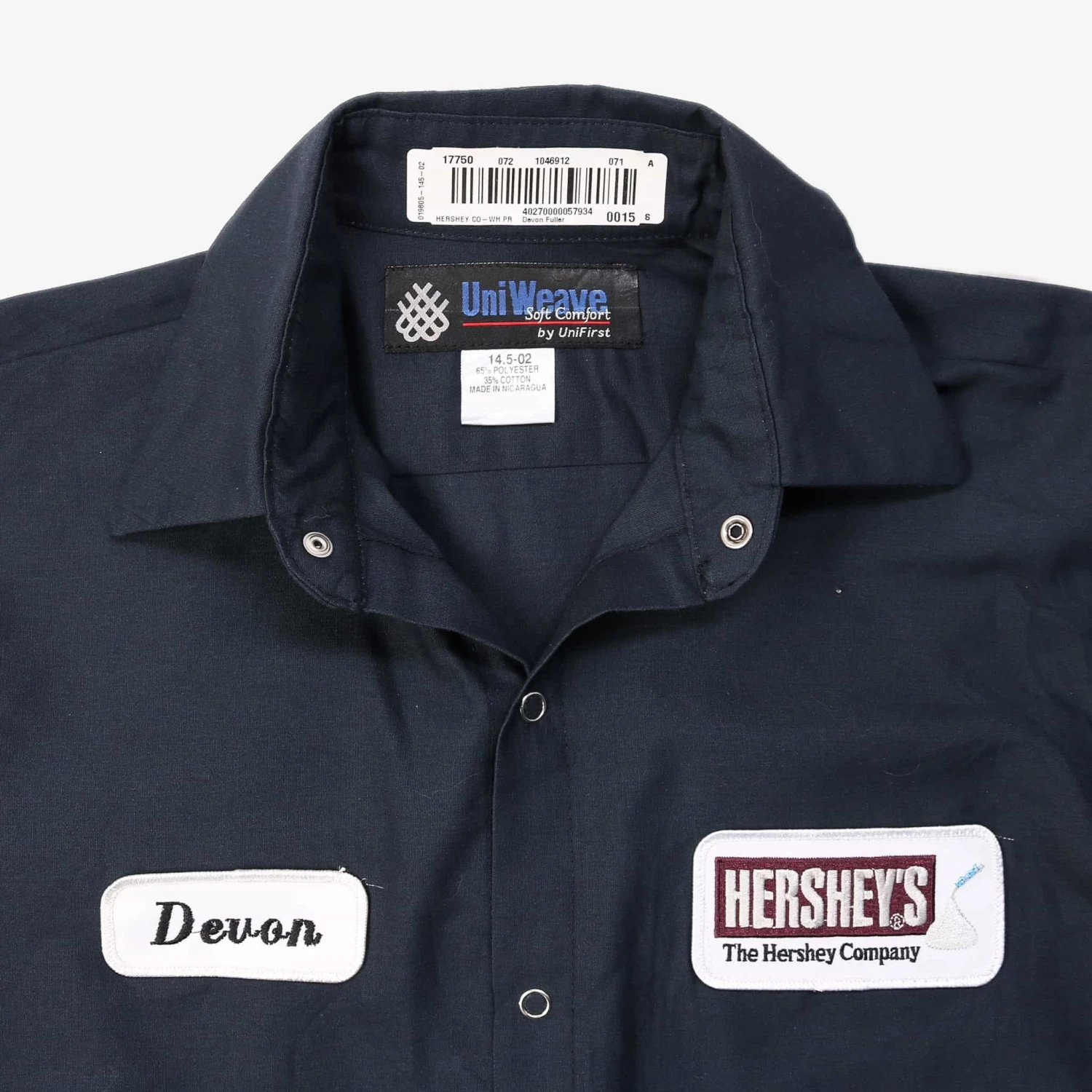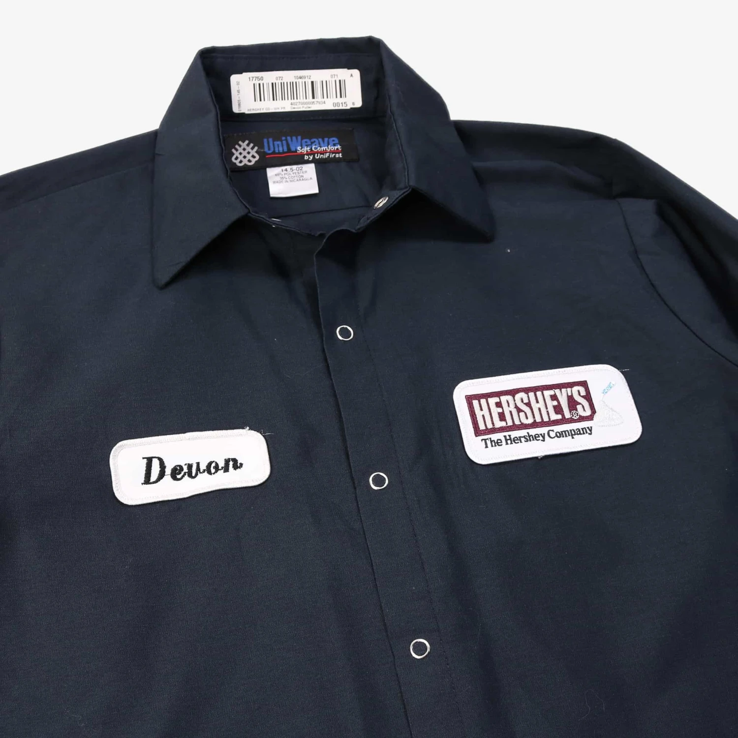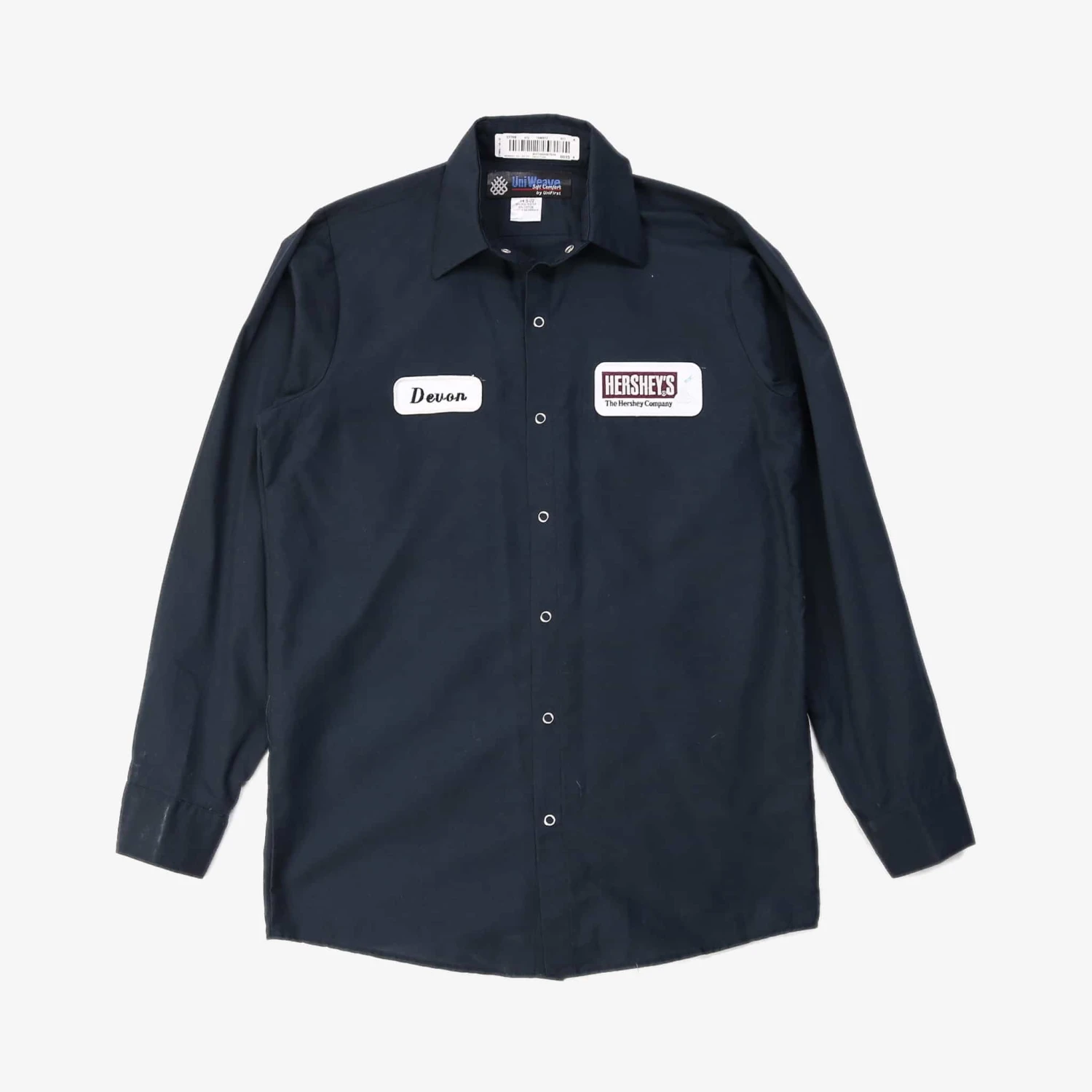 Vintage long-sleeved work shirt with authentic name and business logo patch.Â