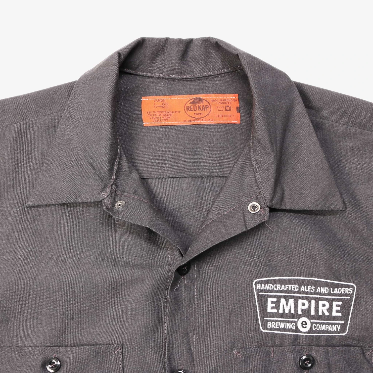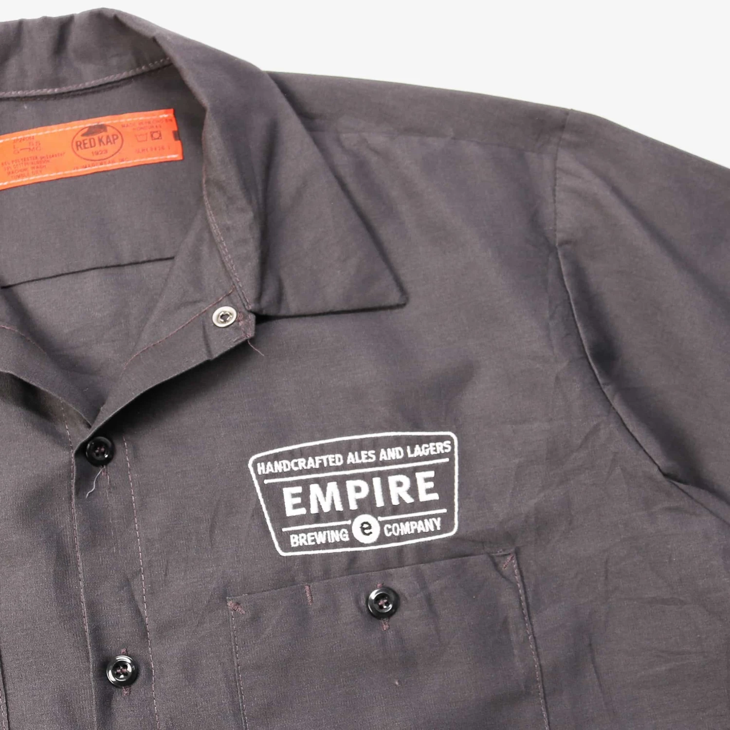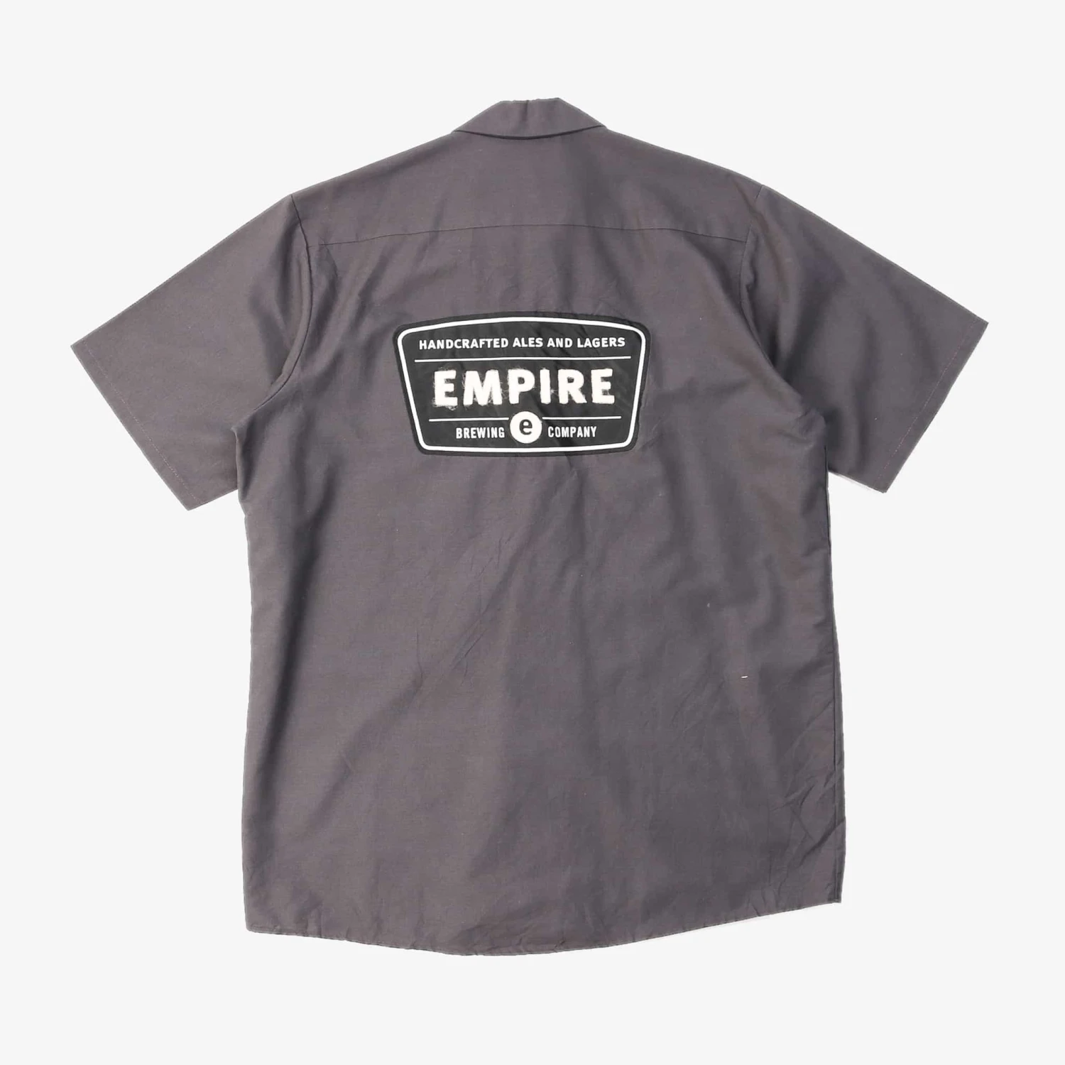 Vintage short-sleeved work shirt with authentic name and business logo patch.Â