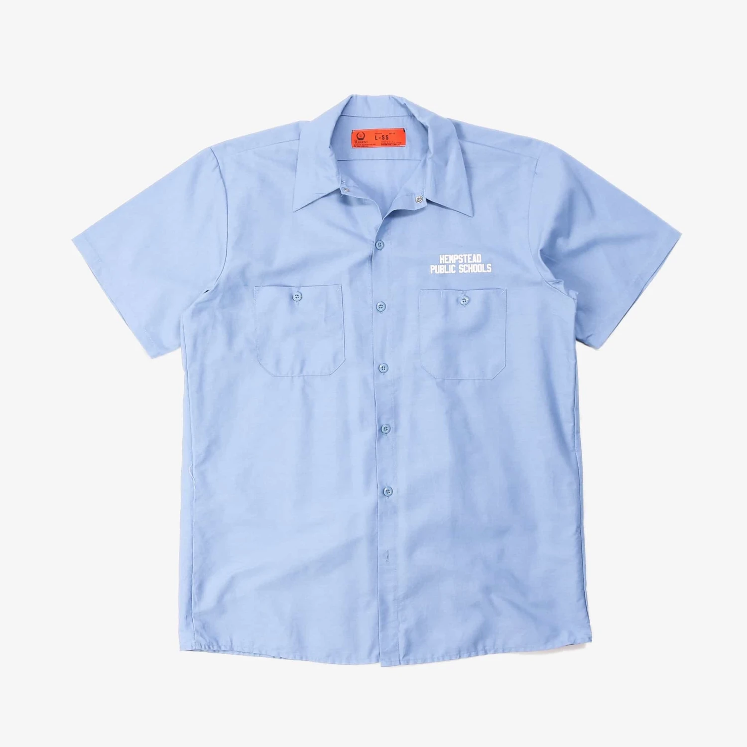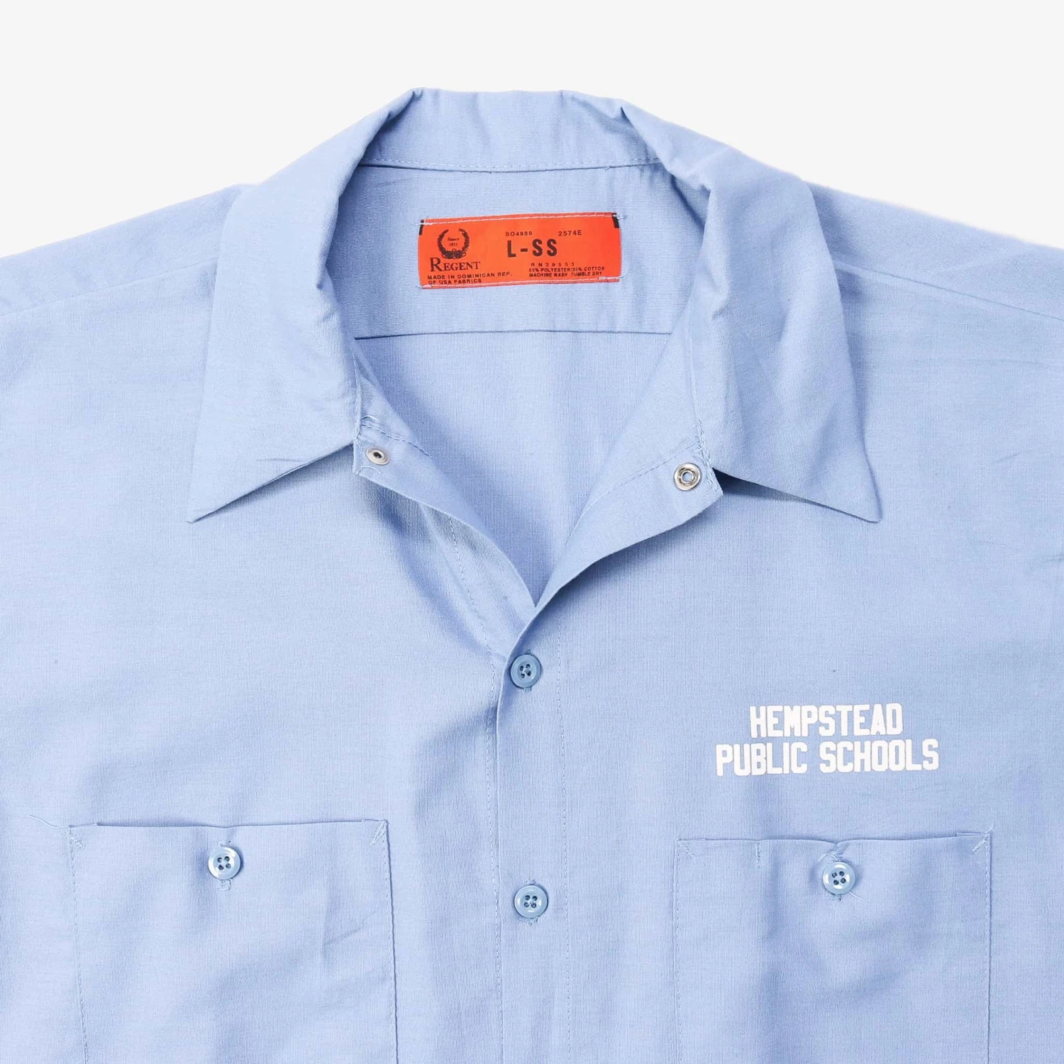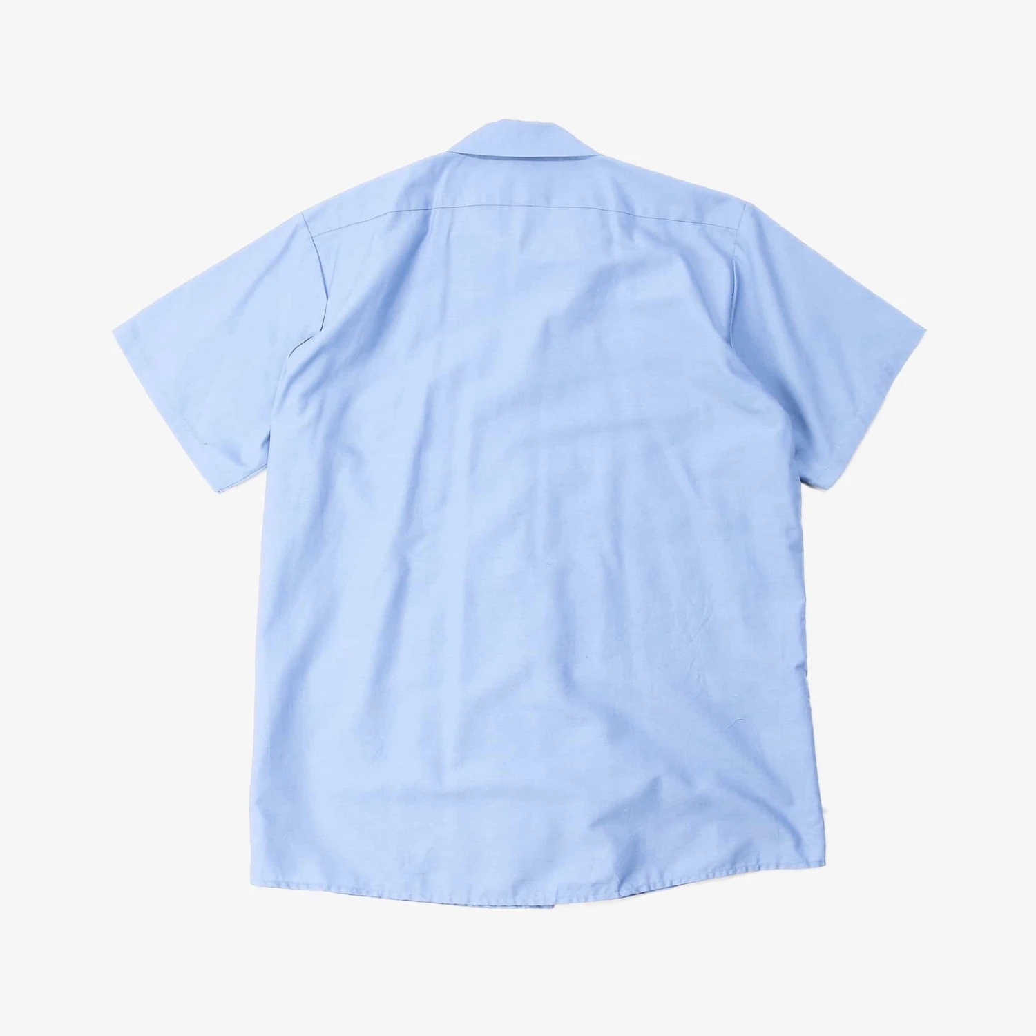 Vintage short-sleeved work shirt with authentic name and business logo patch.Â