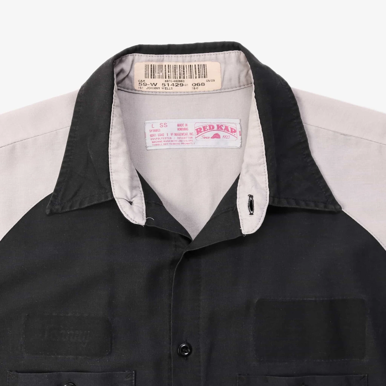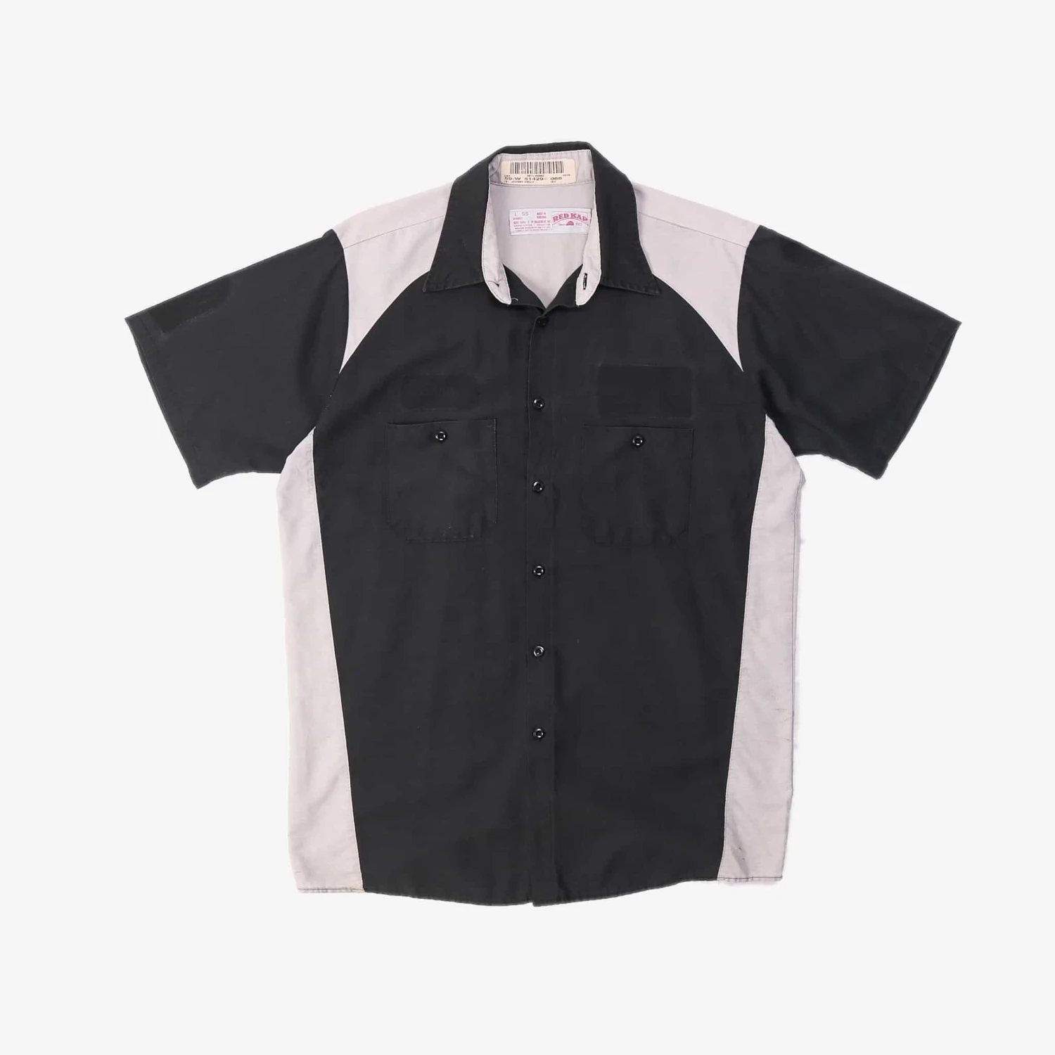 Vintage short-sleeved work shirt with authentic name and business logo patch.Â