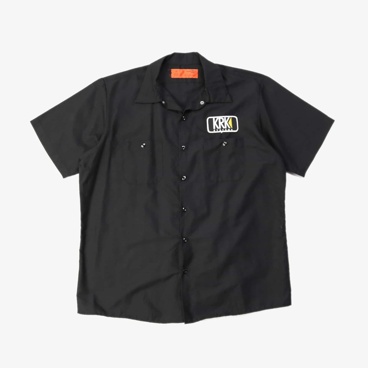Vintage short-sleeved work shirt with authentic name and business logo patch.Â