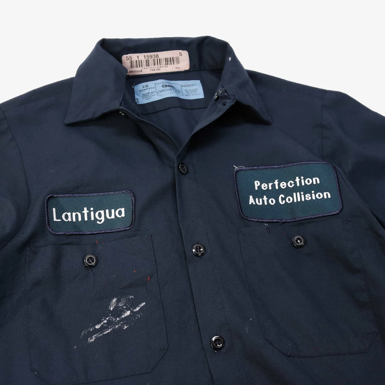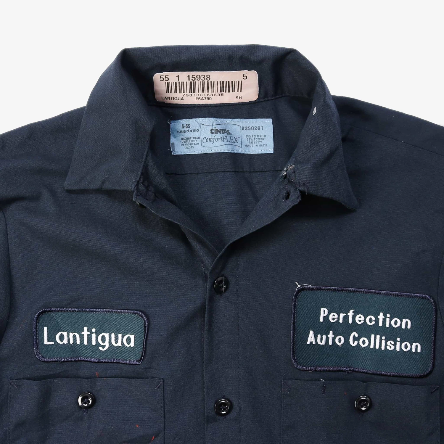 Vintage short-sleeved work shirt with authentic name and business logo patch.Â