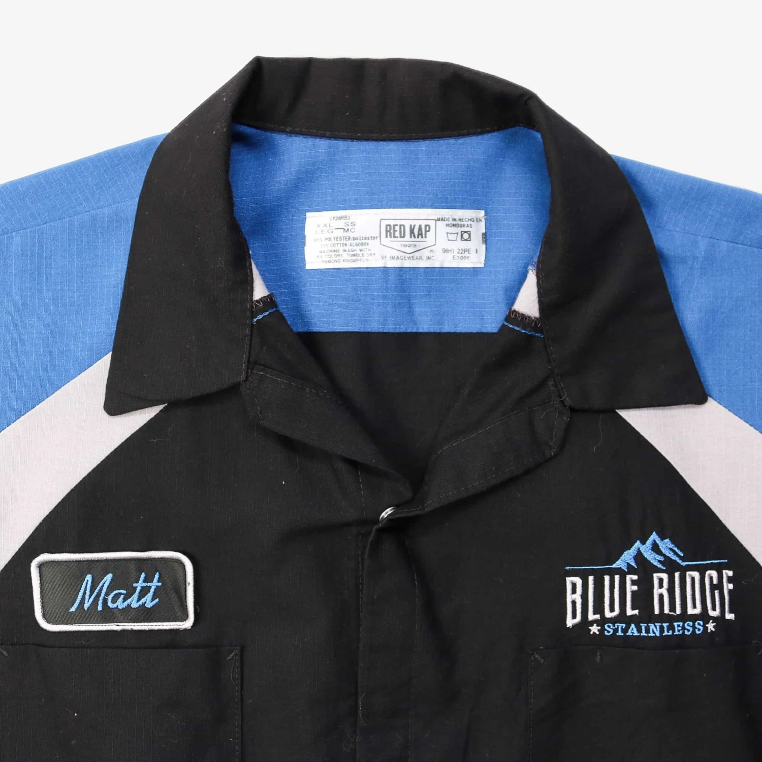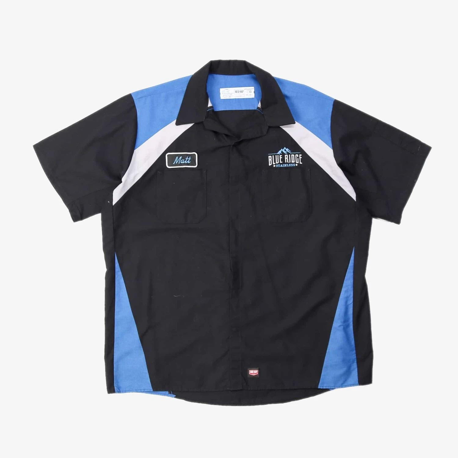 Vintage short-sleeved work shirt with authentic name and business logo patch.Â