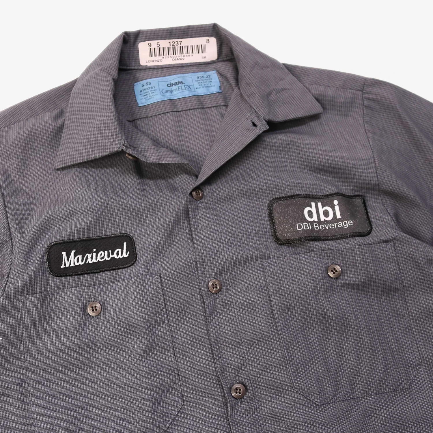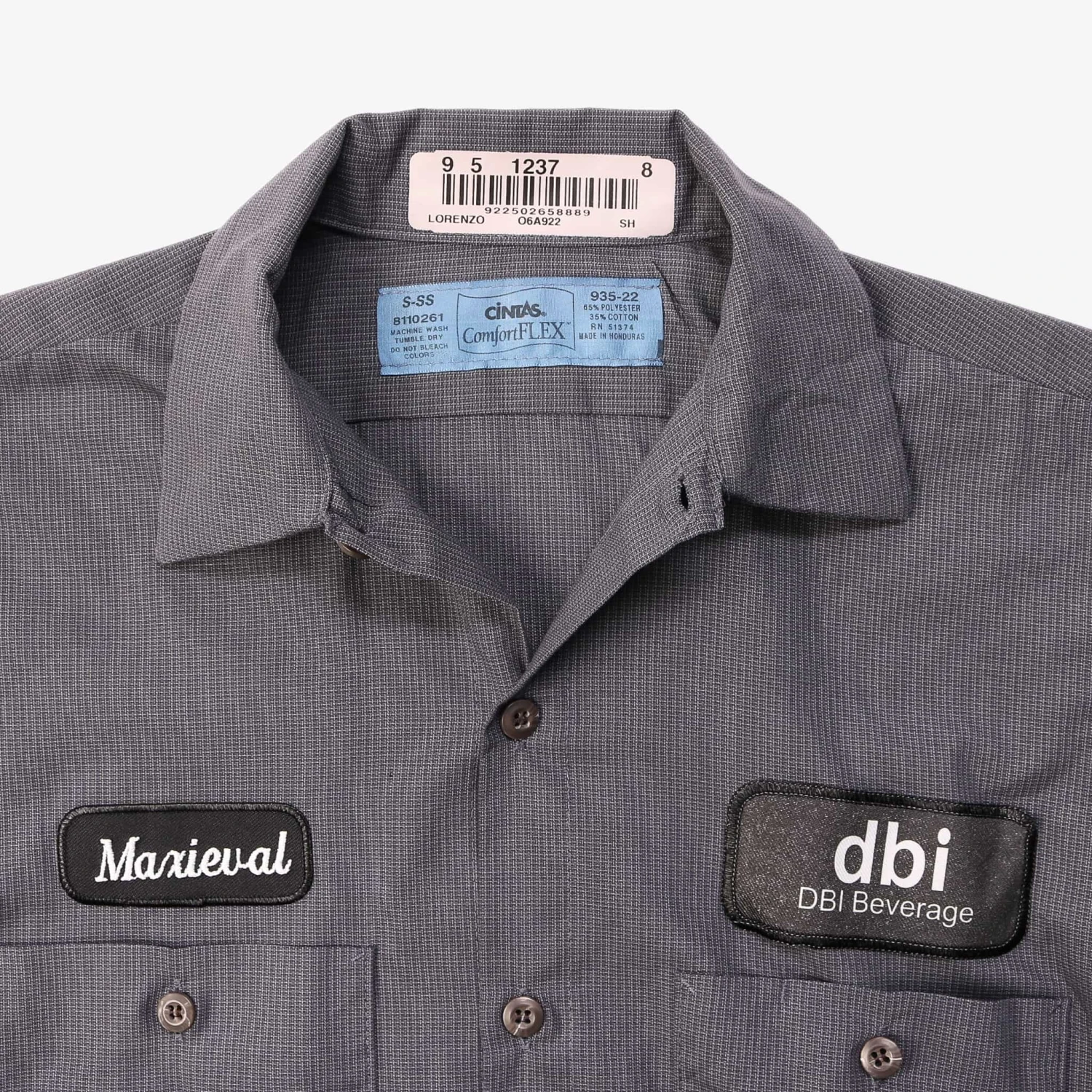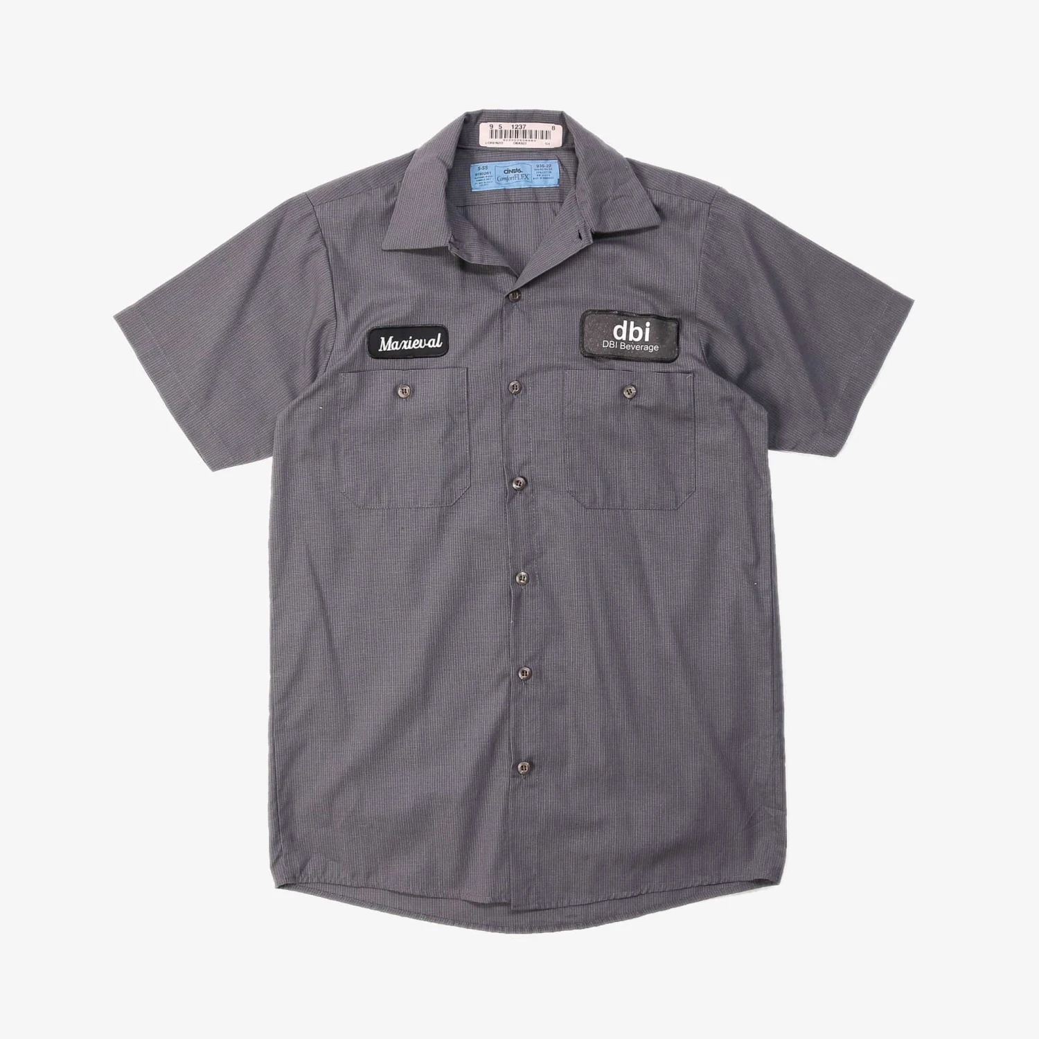 Vintage short-sleeved work shirt with authentic name and business logo patch.Â