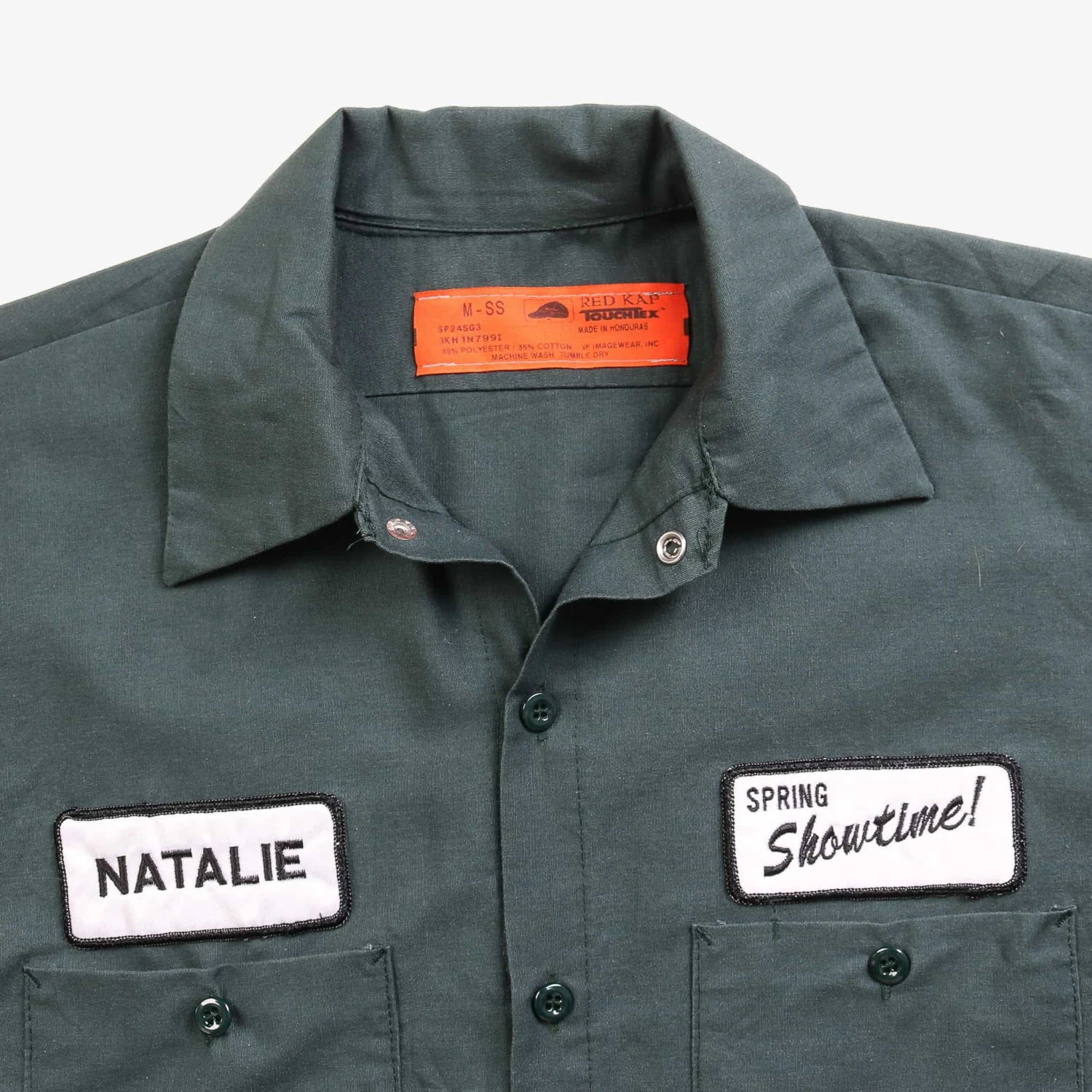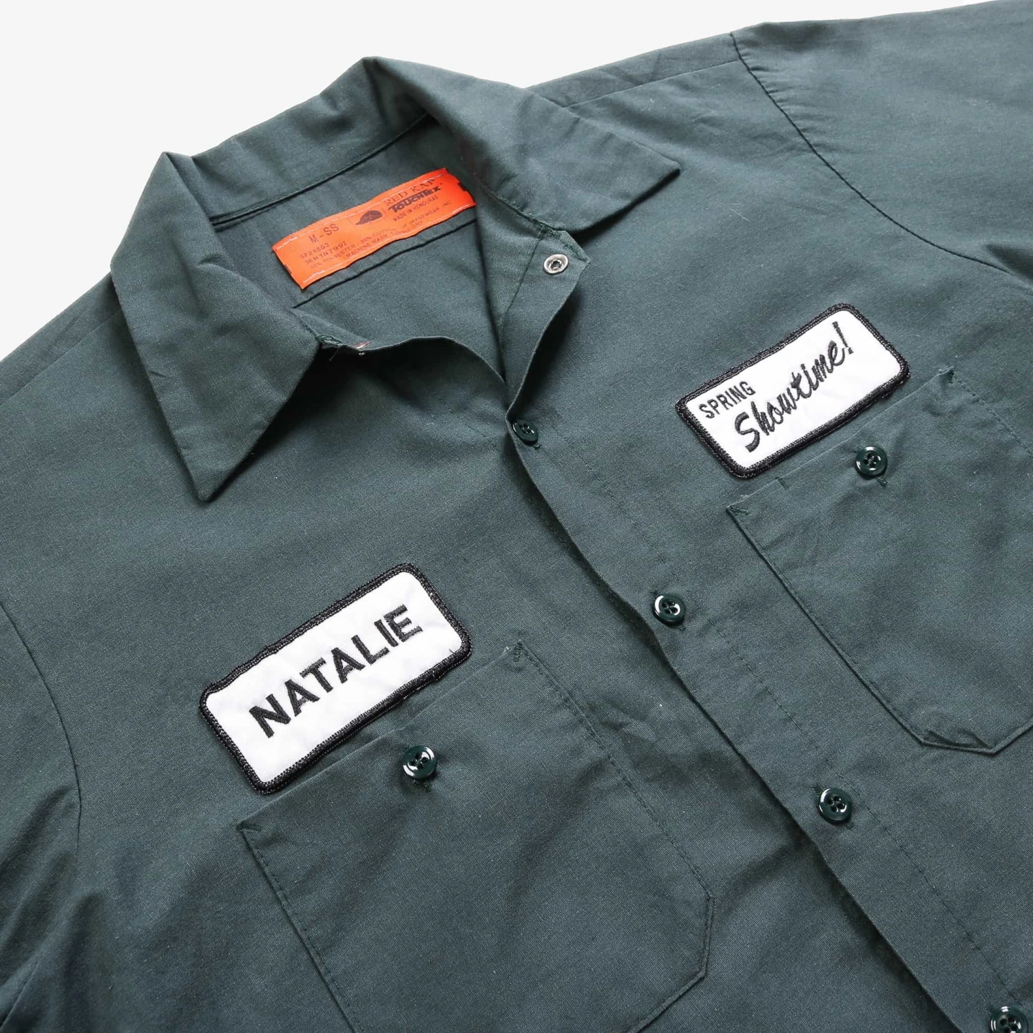 Vintage short-sleeved work shirt with authentic name and business logo patch.Â