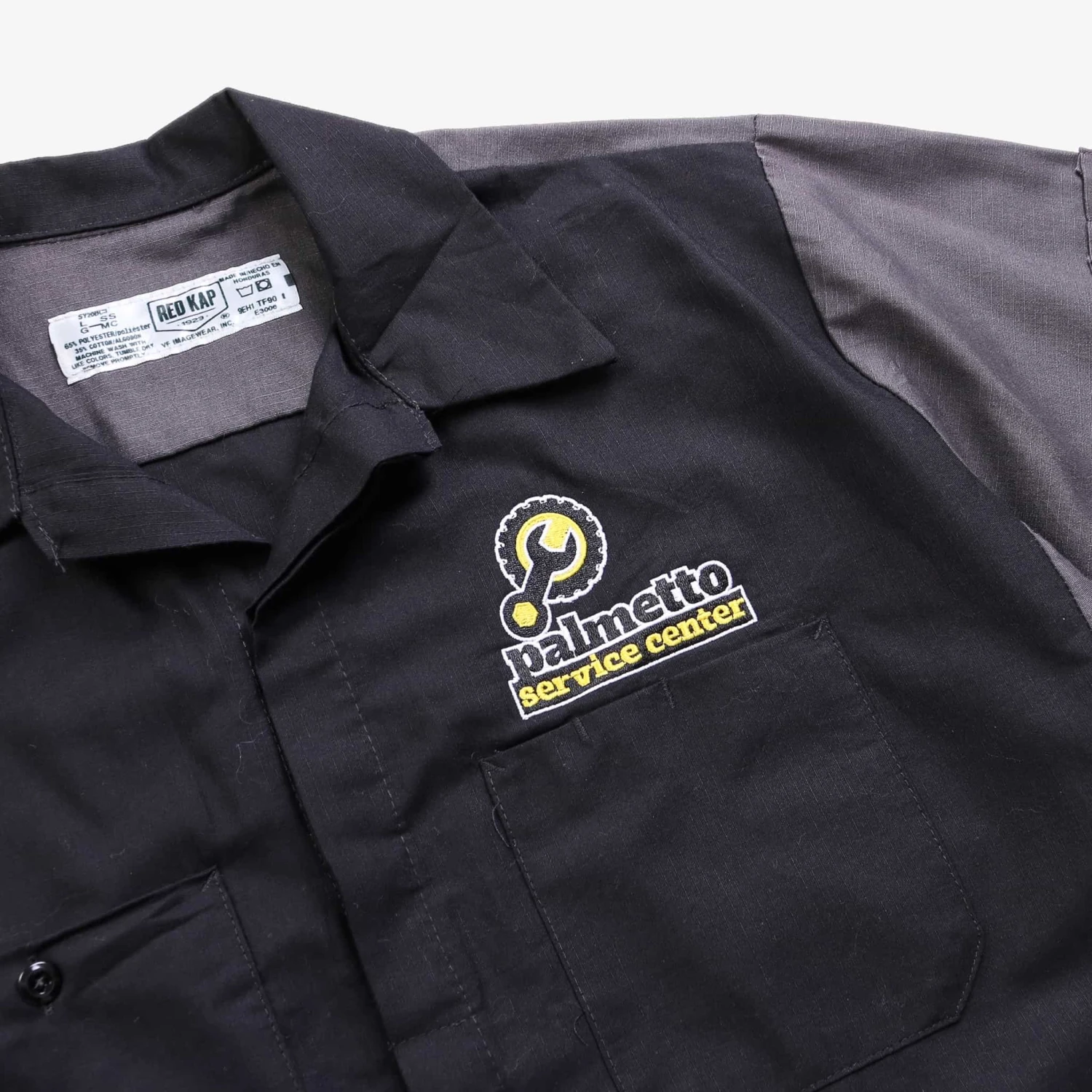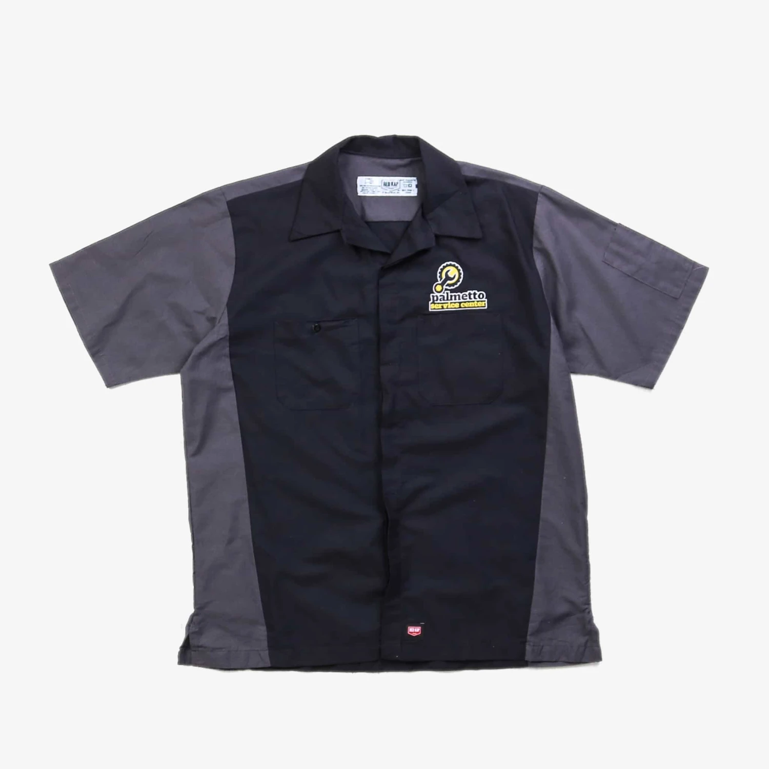 Vintage short-sleeved work shirt with authentic name and business logo patch.Â