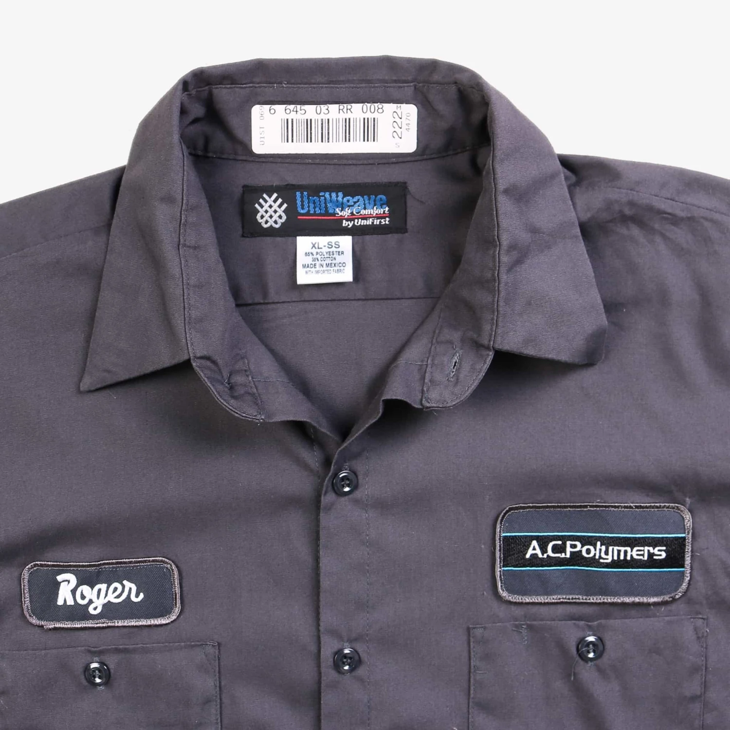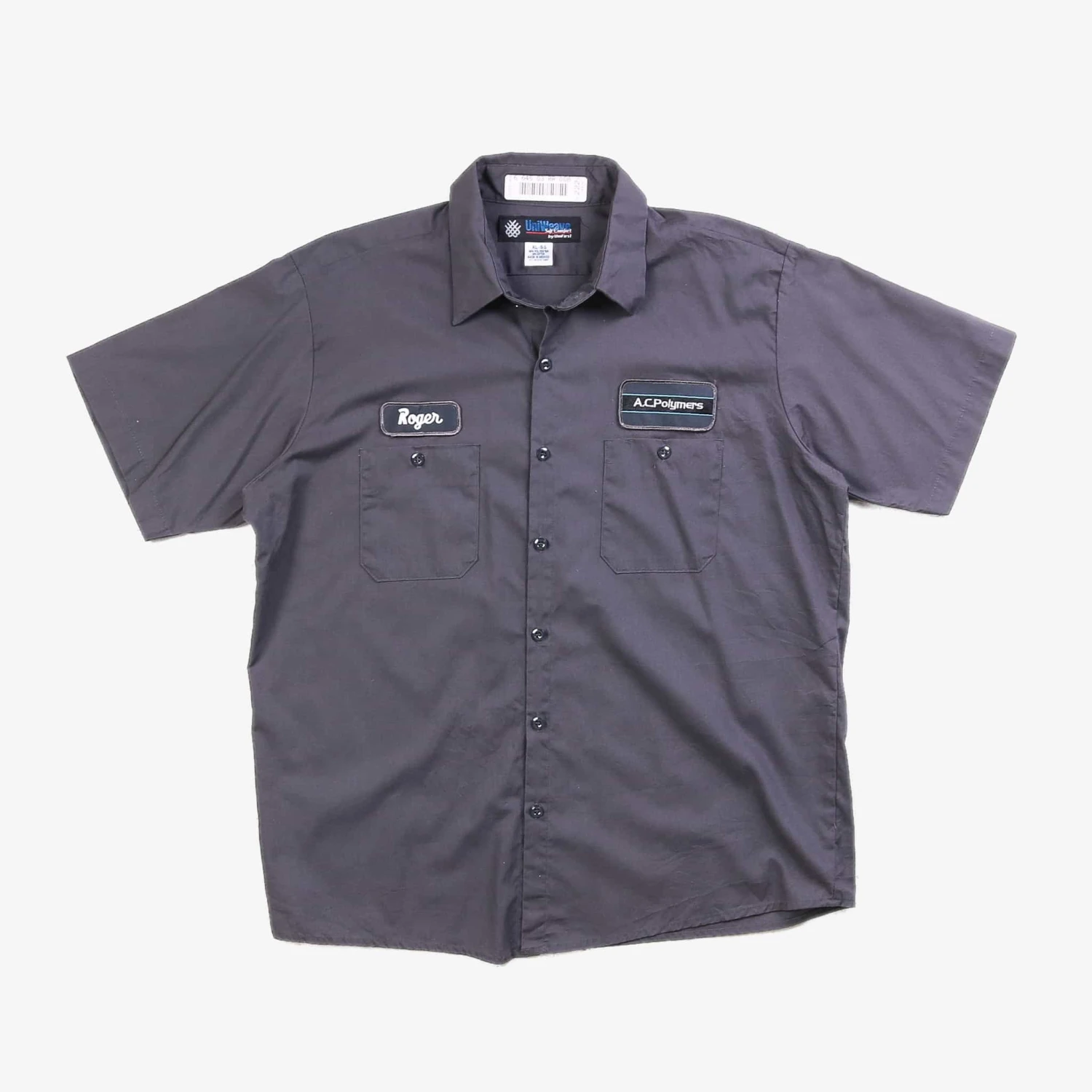 Vintage short-sleeved work shirt with authentic name and business logo patch.Â