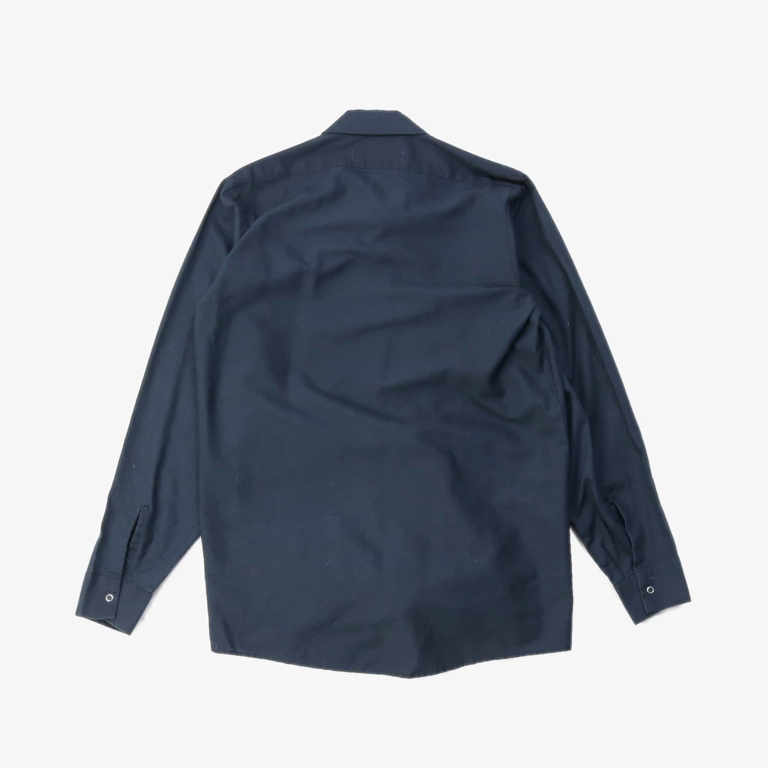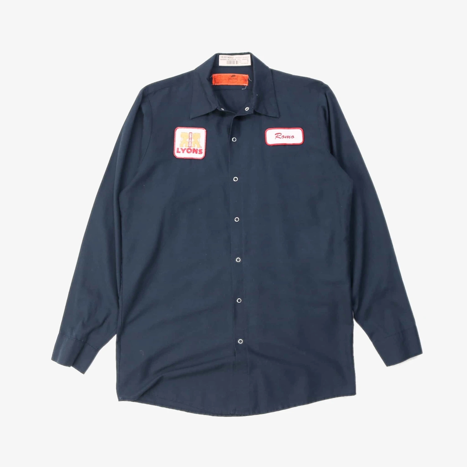 Vintage long-sleeved work shirt with authentic name and business logo patch.Â