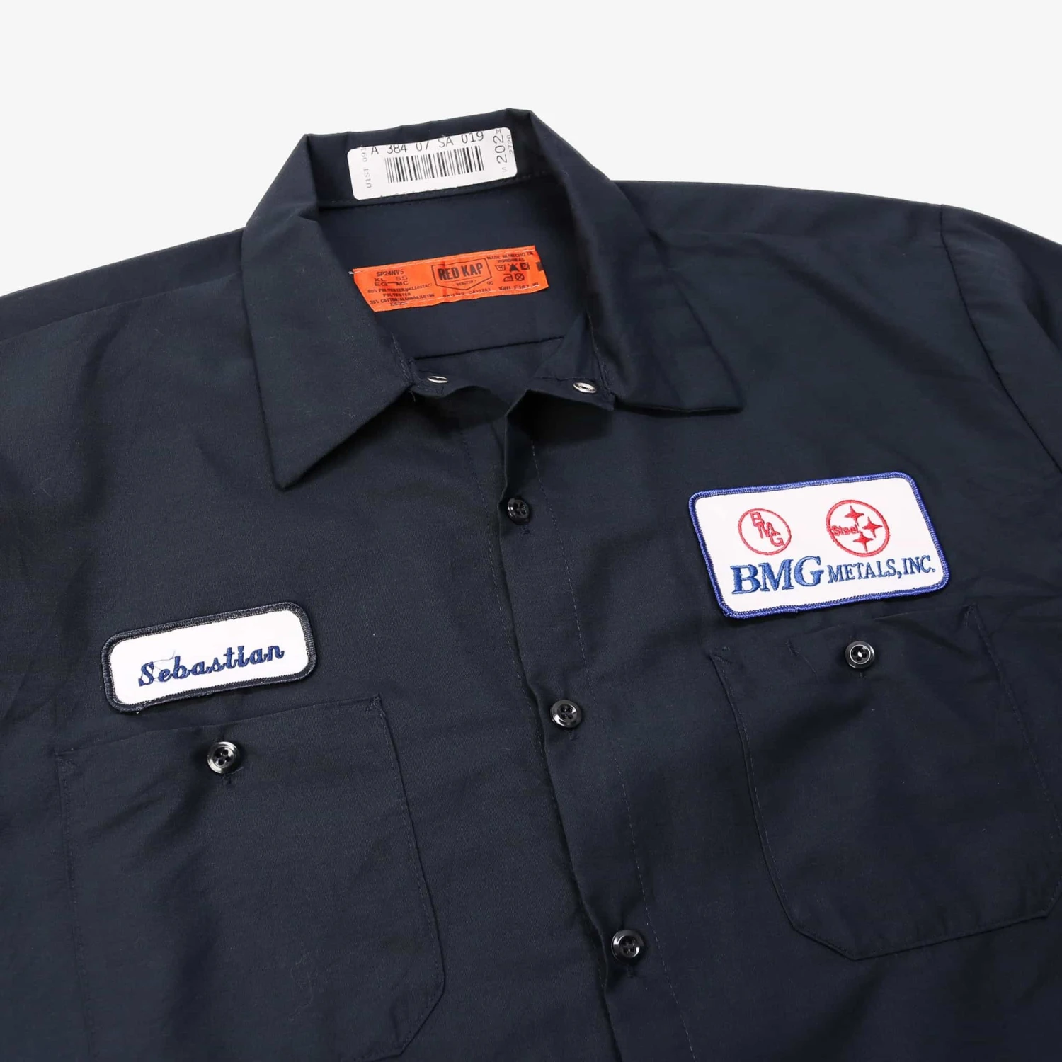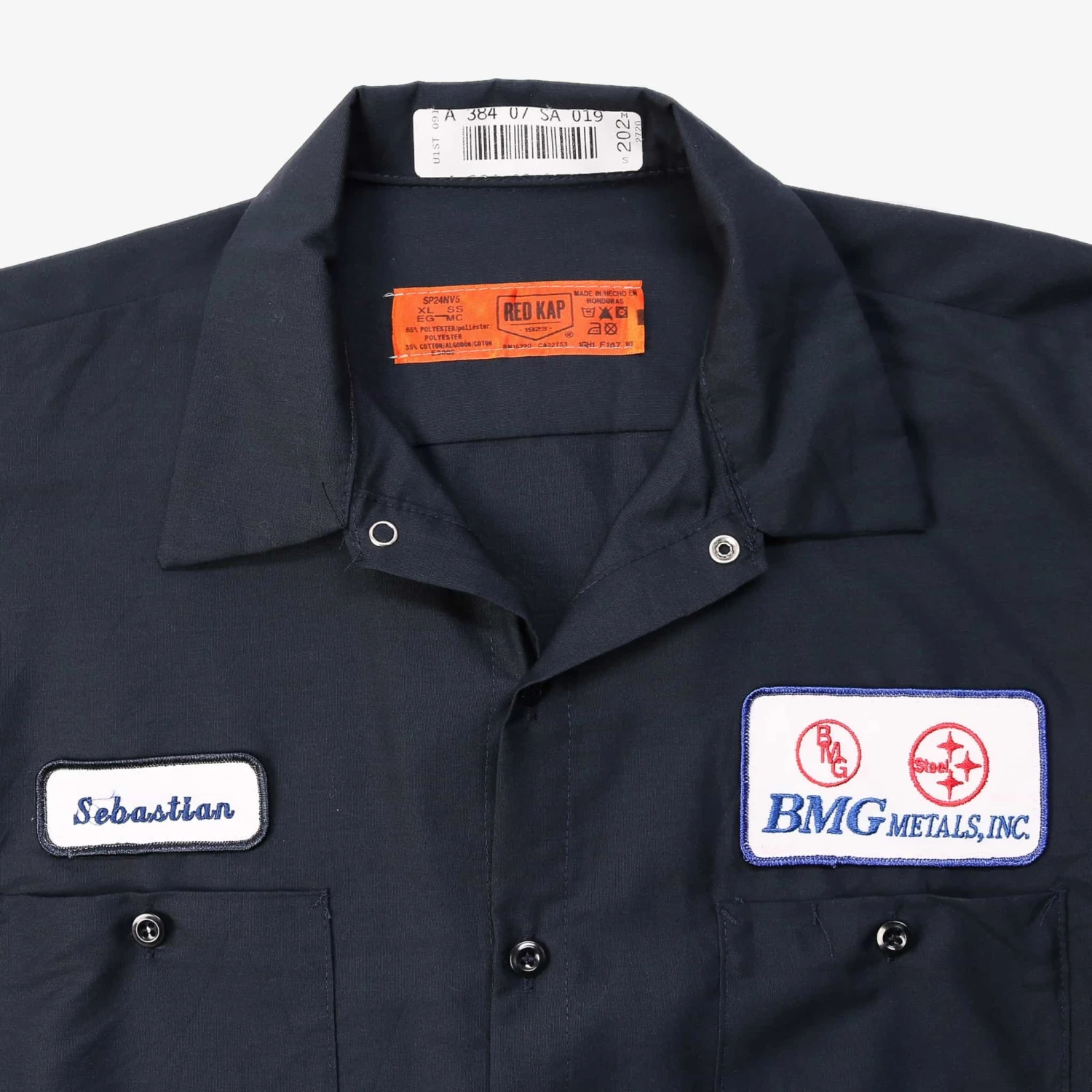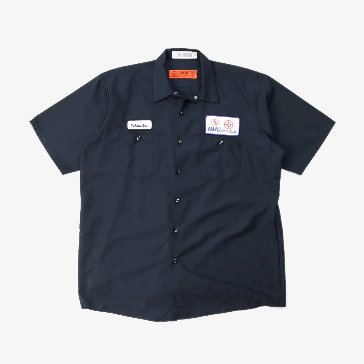 Vintage short-sleeved work shirt with authentic name and business logo patch.Â
