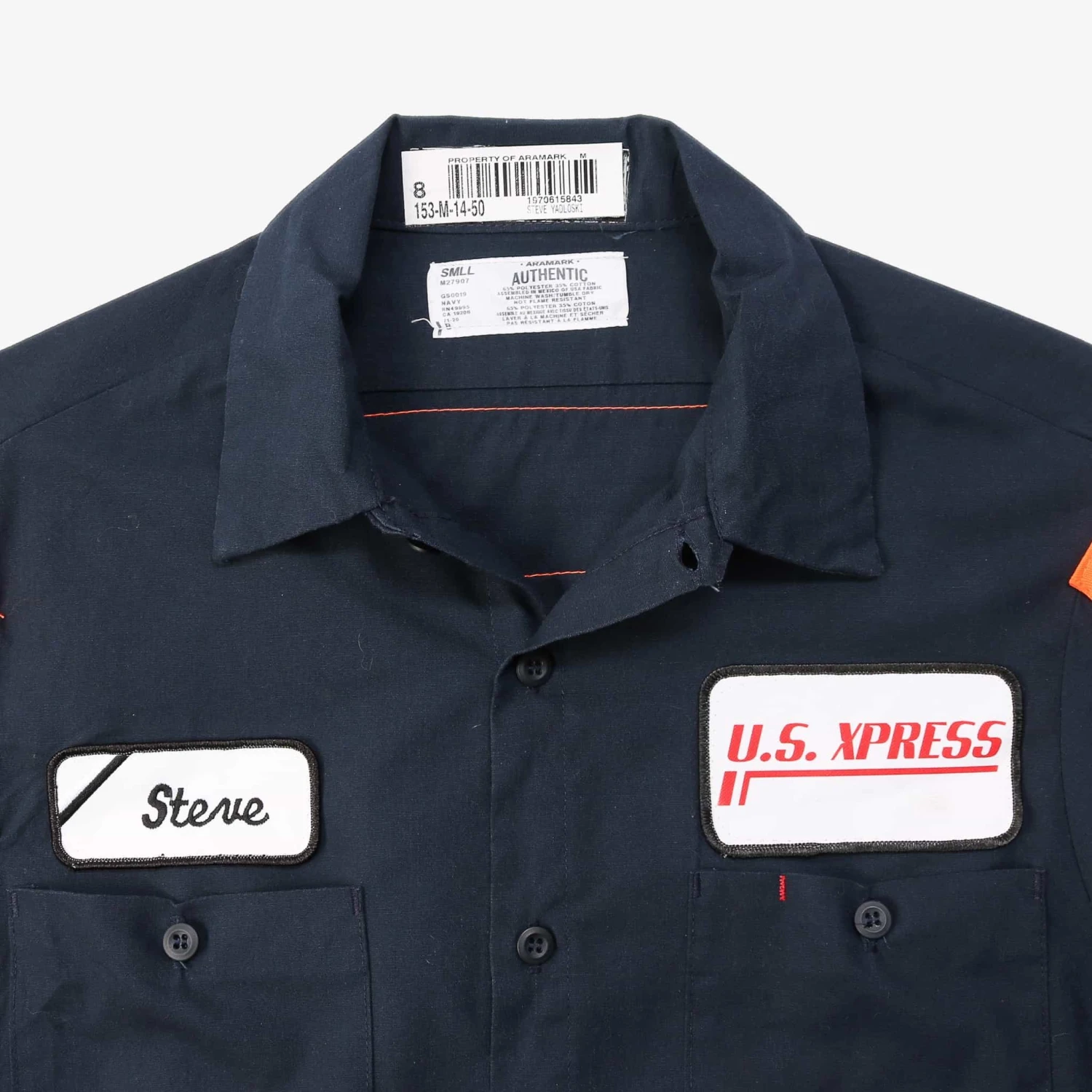Vintage short-sleeved work shirt with authentic name and business logo patch.Â