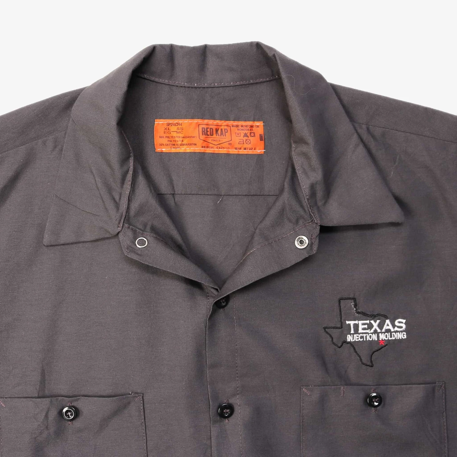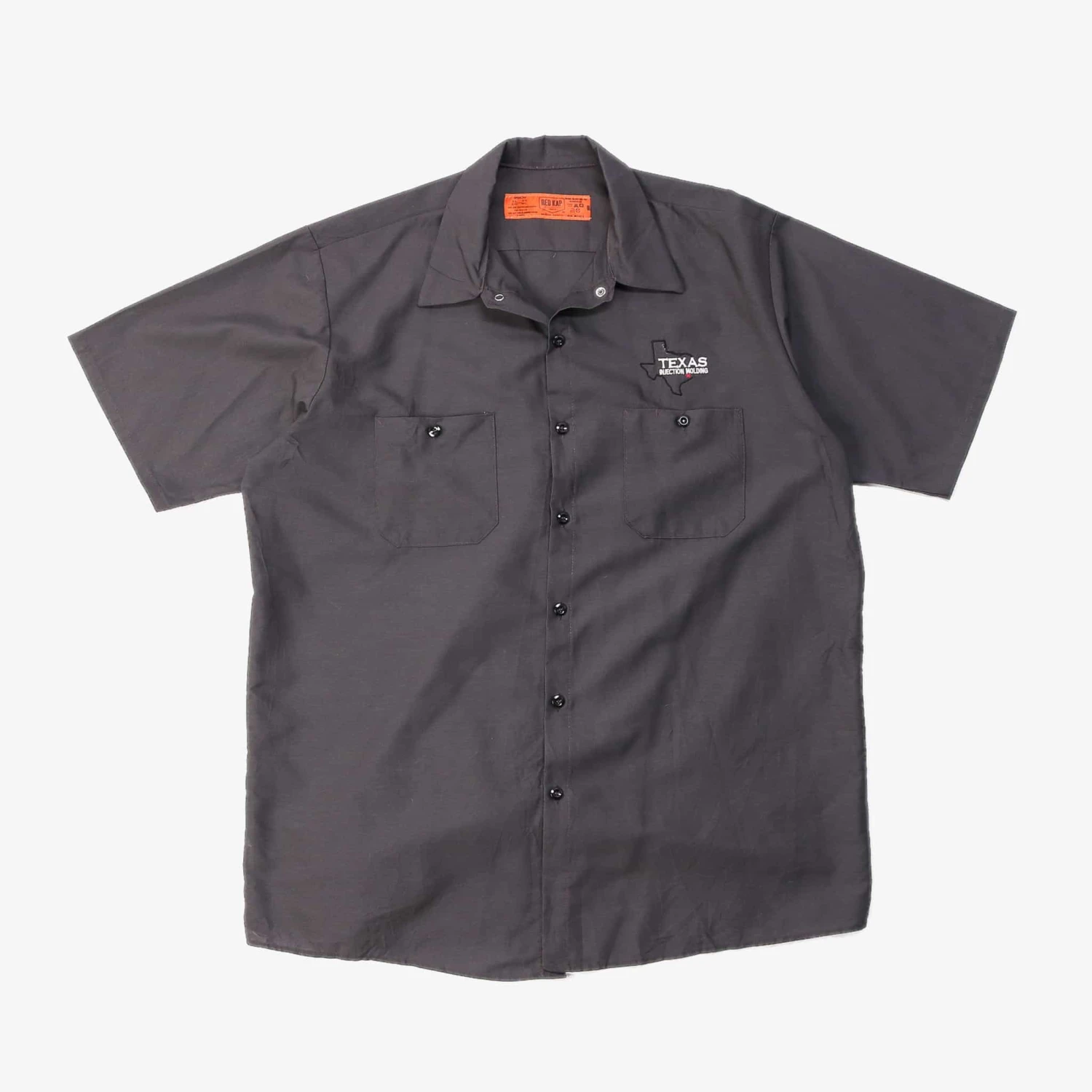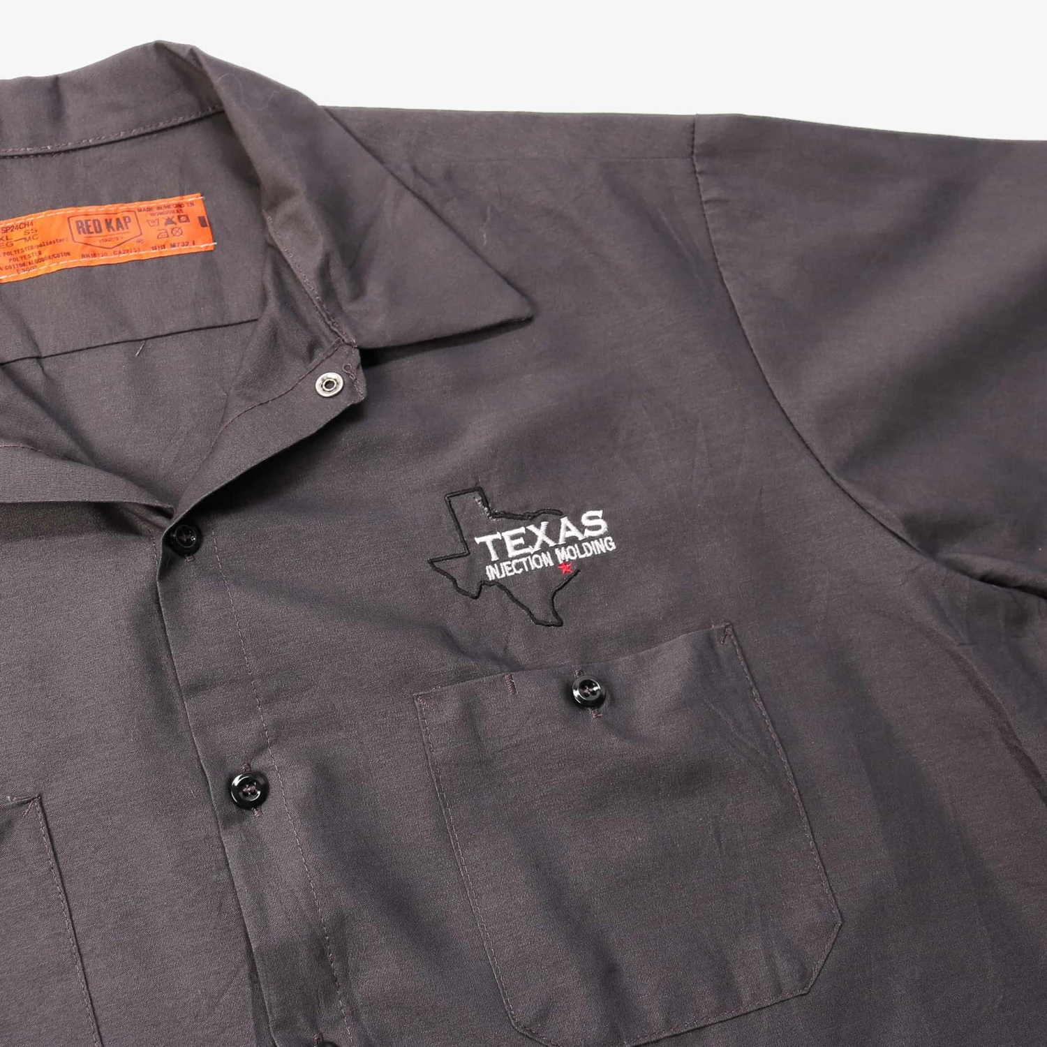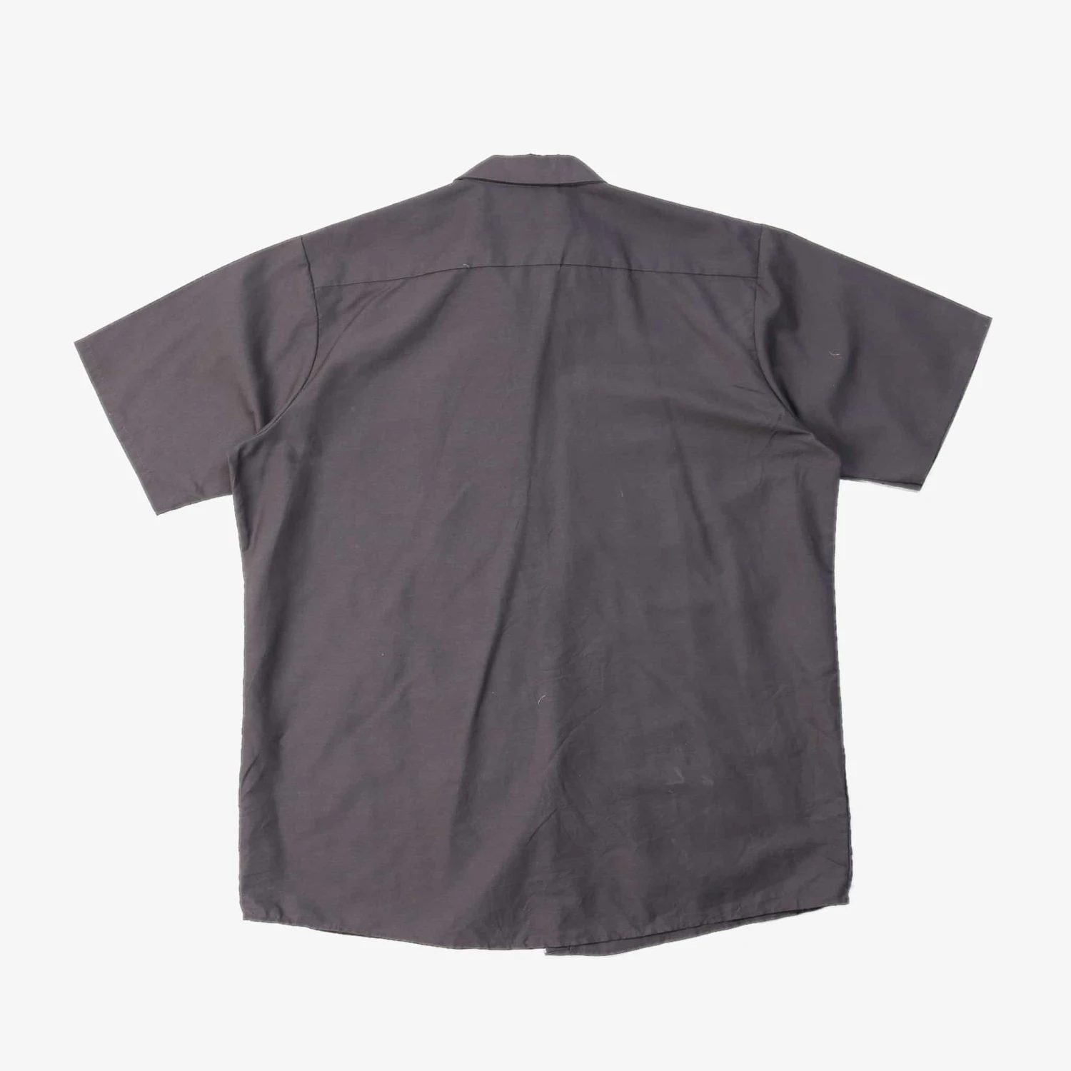 Vintage short-sleeved work shirt with authentic name and business logo patch.Â