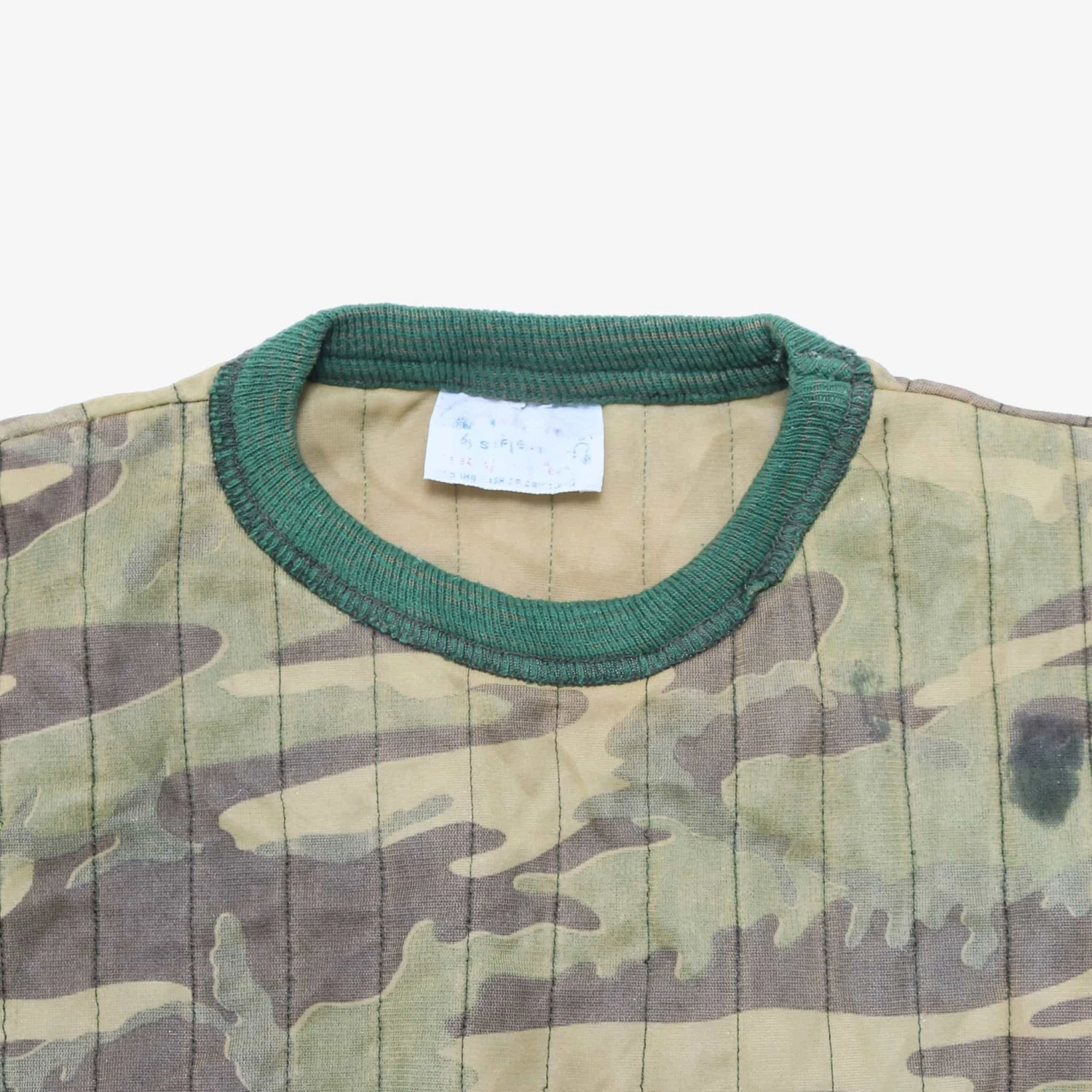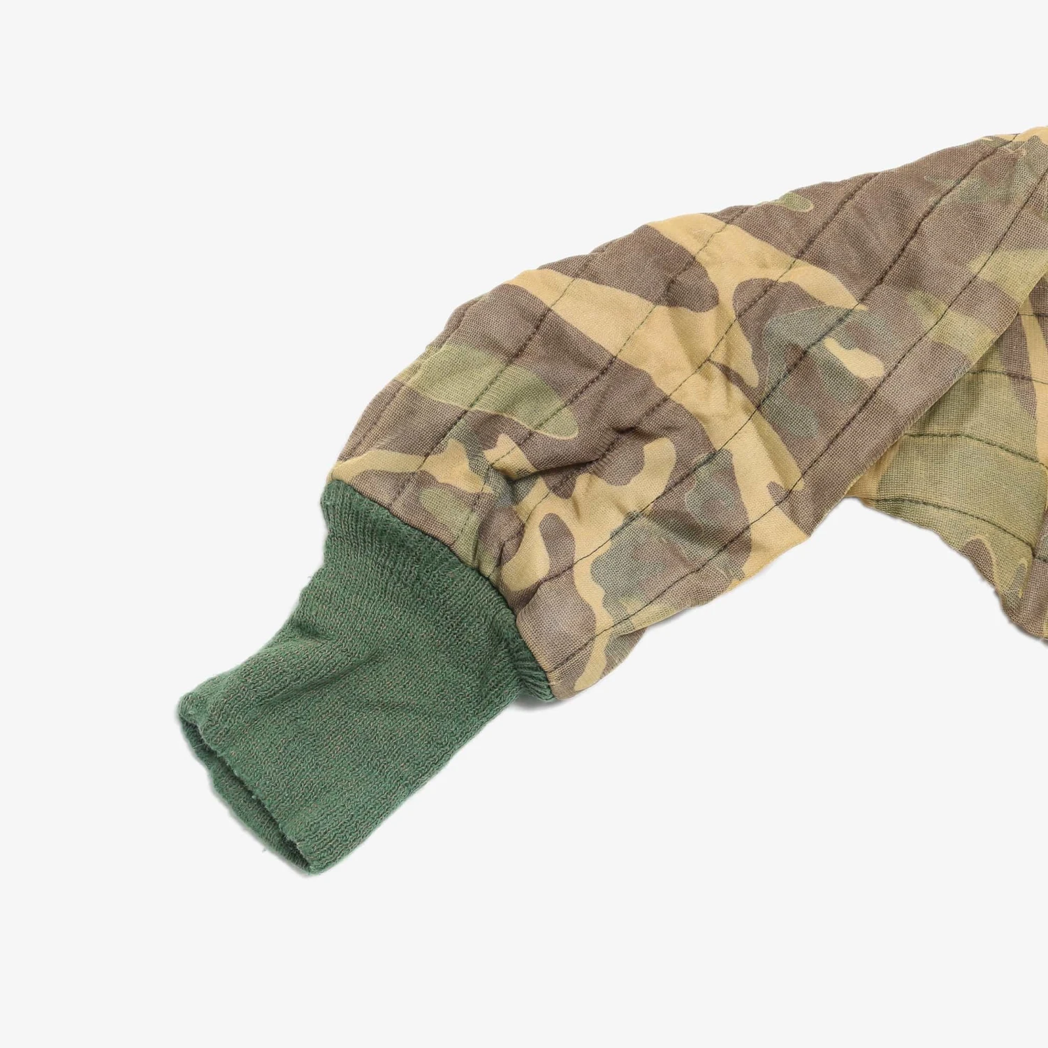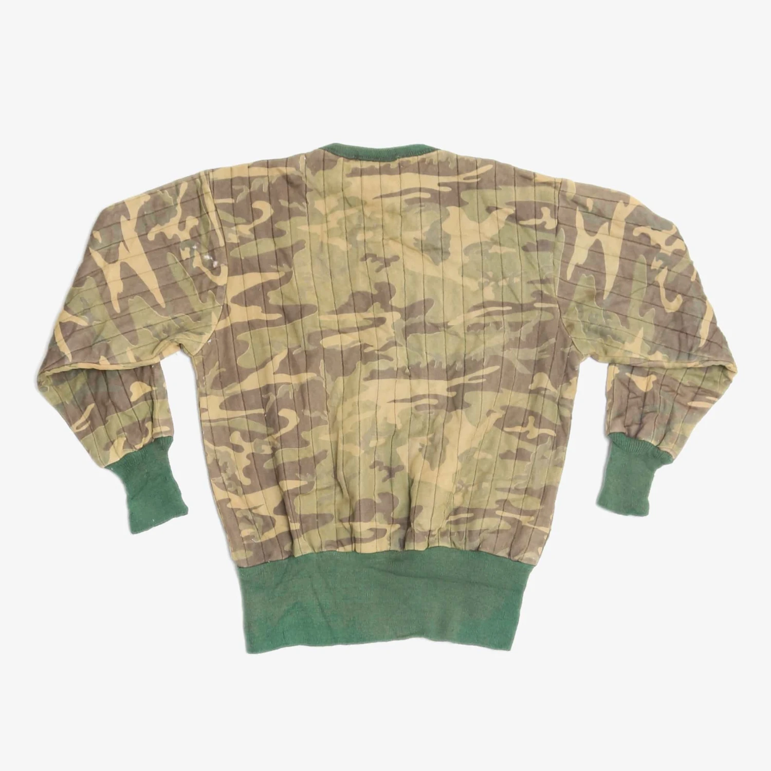 Vintage hunting sweatshirt. Slight padded camo body with knitted sleeves and bottom hem.